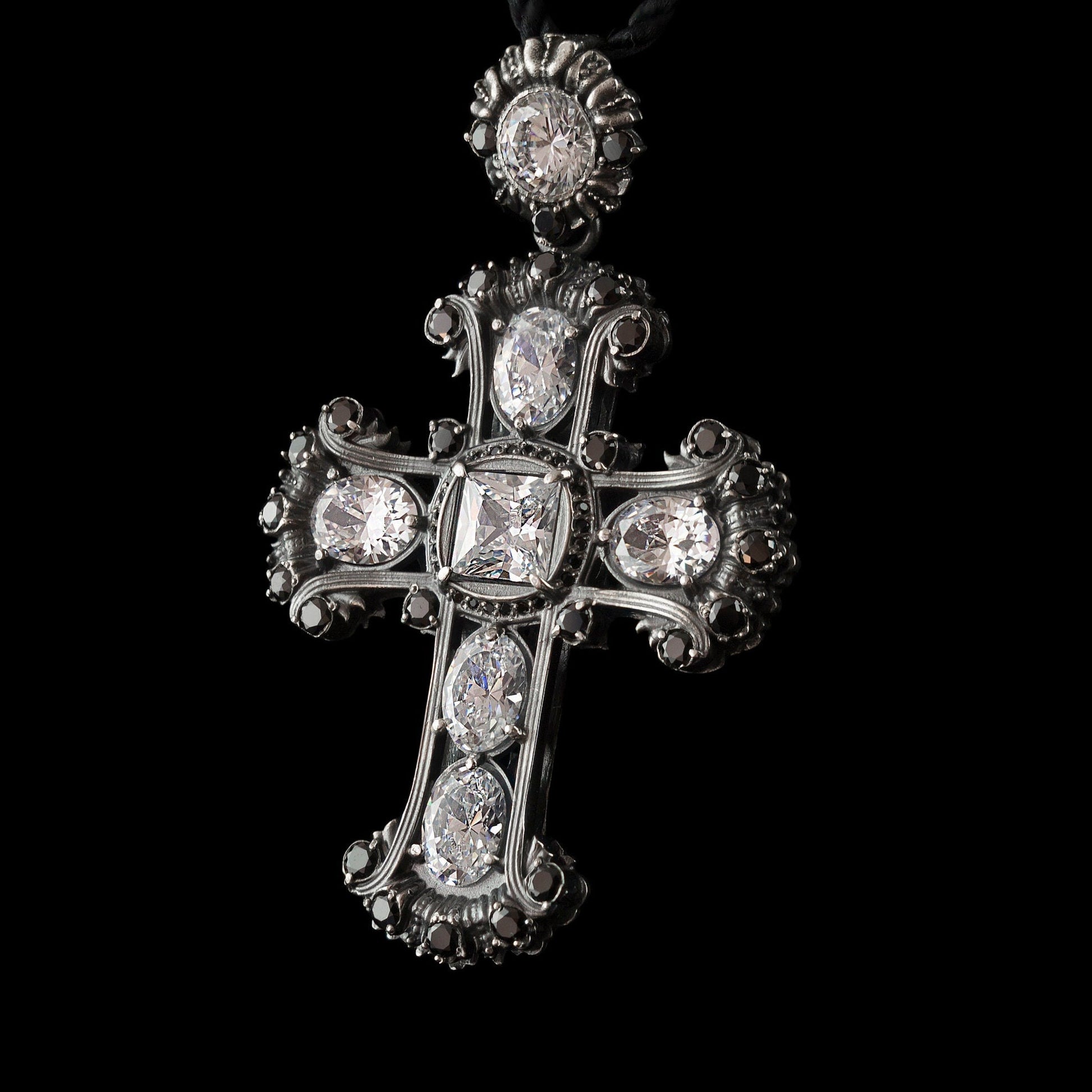 Brilliant crystal cross Women's silver cross Black cross Victorian jewelry Medieval Cross Women's pendant cross Antique Style jewelry