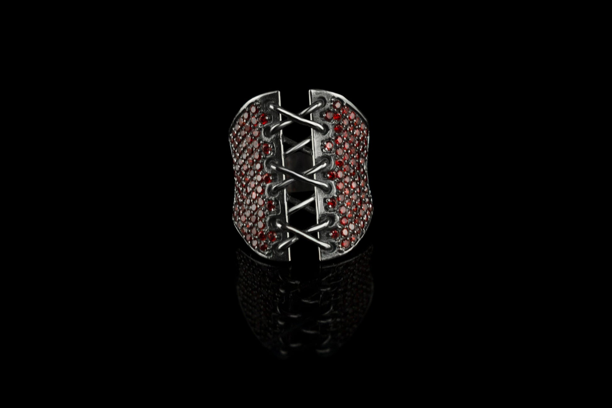 Corset Ring with red gemstones