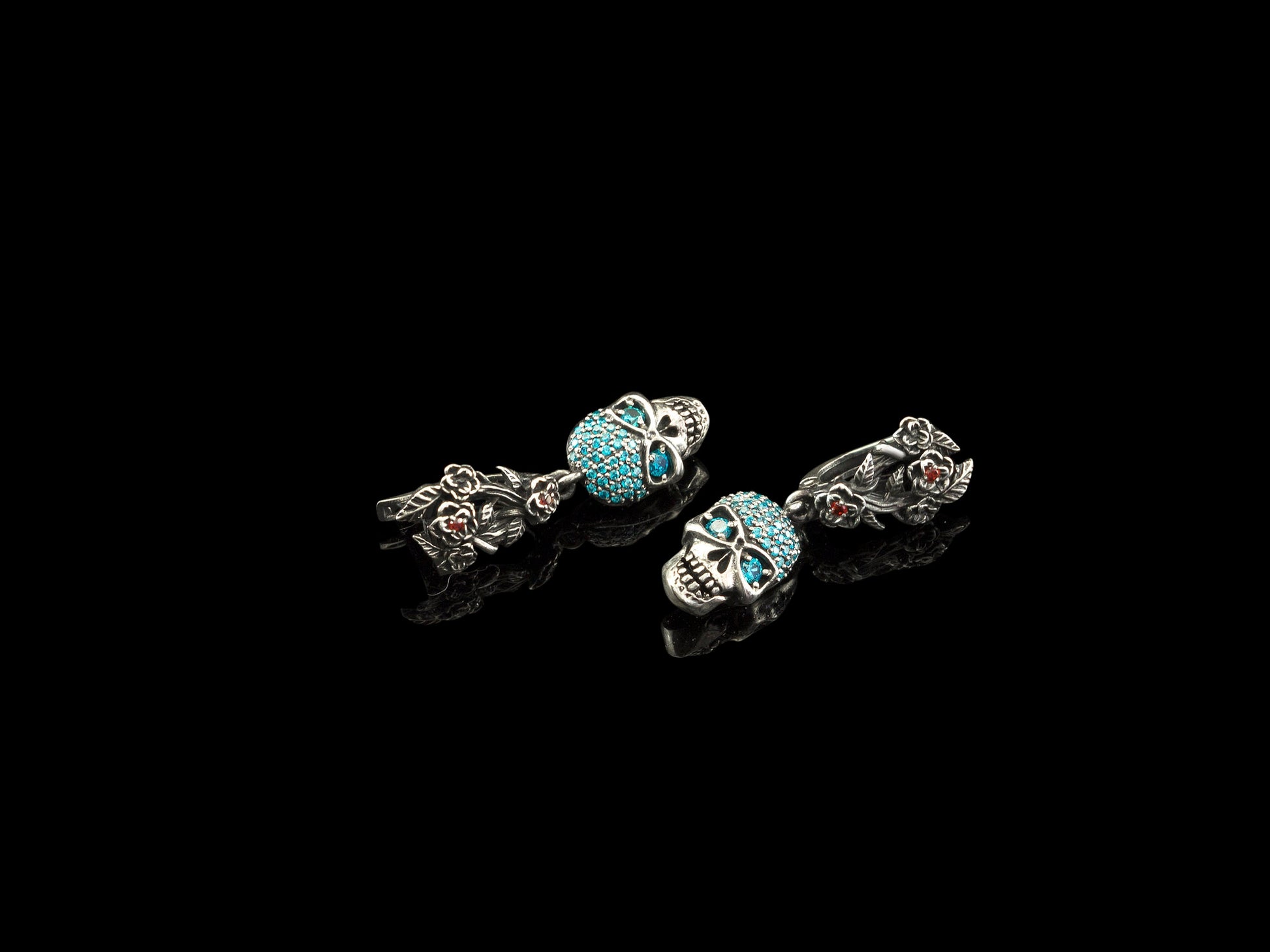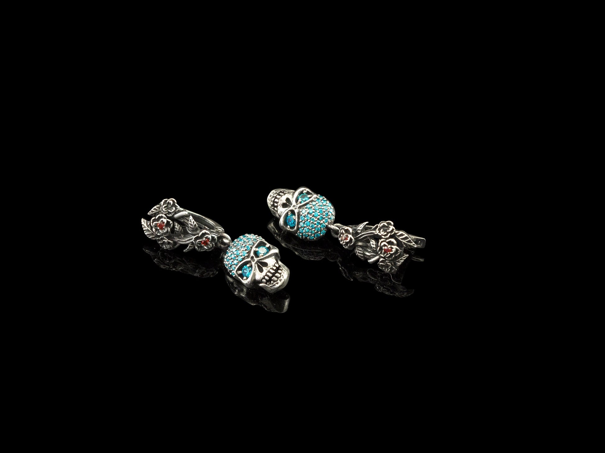 Silver skull earrings Blue skull jewelry Gothic Santa Muerte earrings Women skull earring