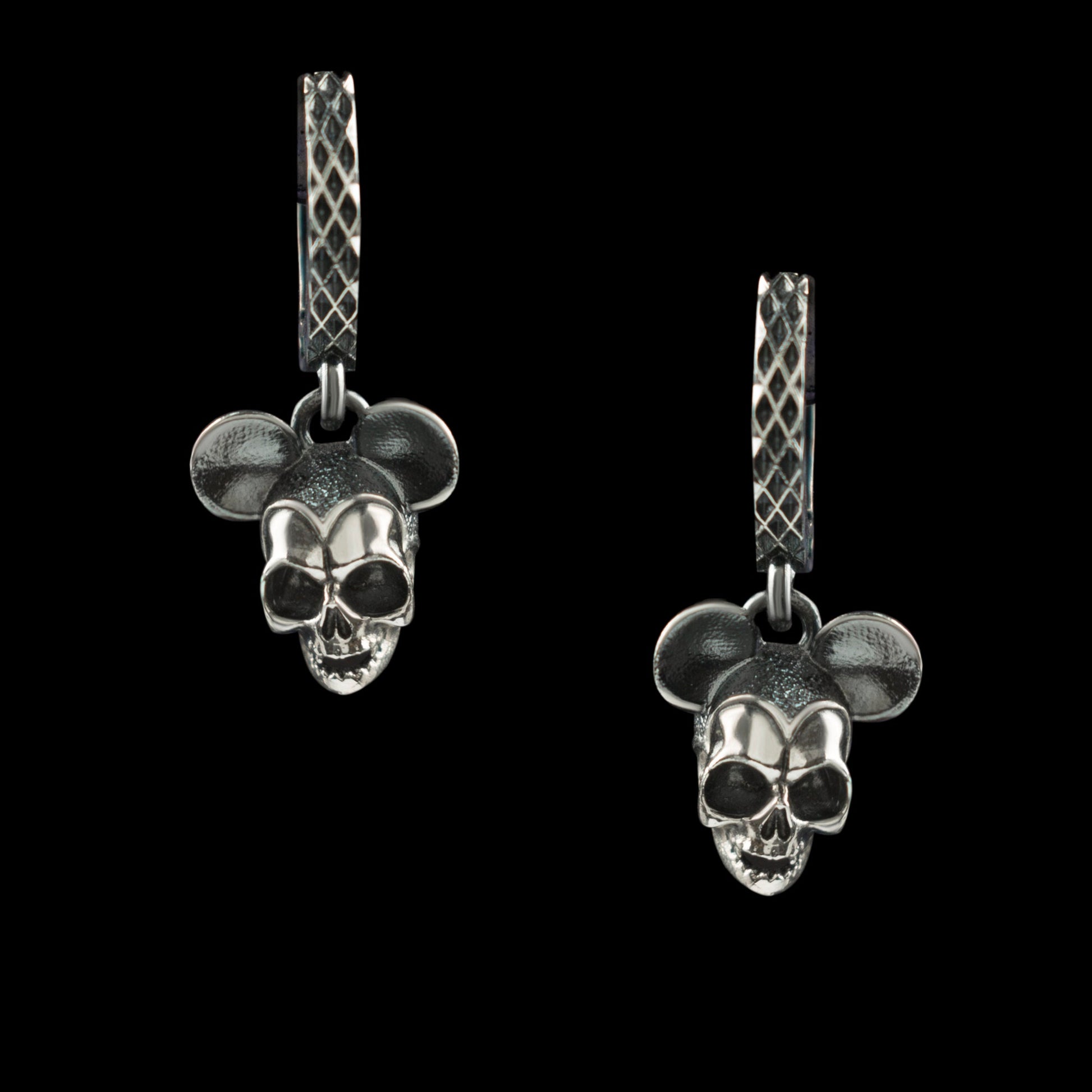 Silver skull earrings Mouse earrings Skull earrings Brutalist earrings for her