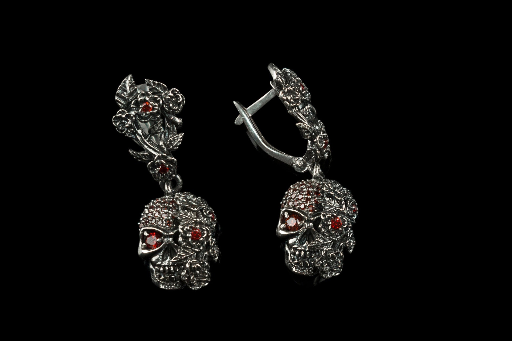 Silver skull earrings, Skull earrings, Skull jewelry, Silver skull jewelry, Skull gift for her , Biker jewelry, Women's silver earrings, Goth jewelry, Goth earrings, Silver goth earrings, Biker earrings, Silver biker earrings, Biker silver earrings, Brutalist style, Brutal style, Tatoo style earrings - all you can find in our shop - Yeti jewelry