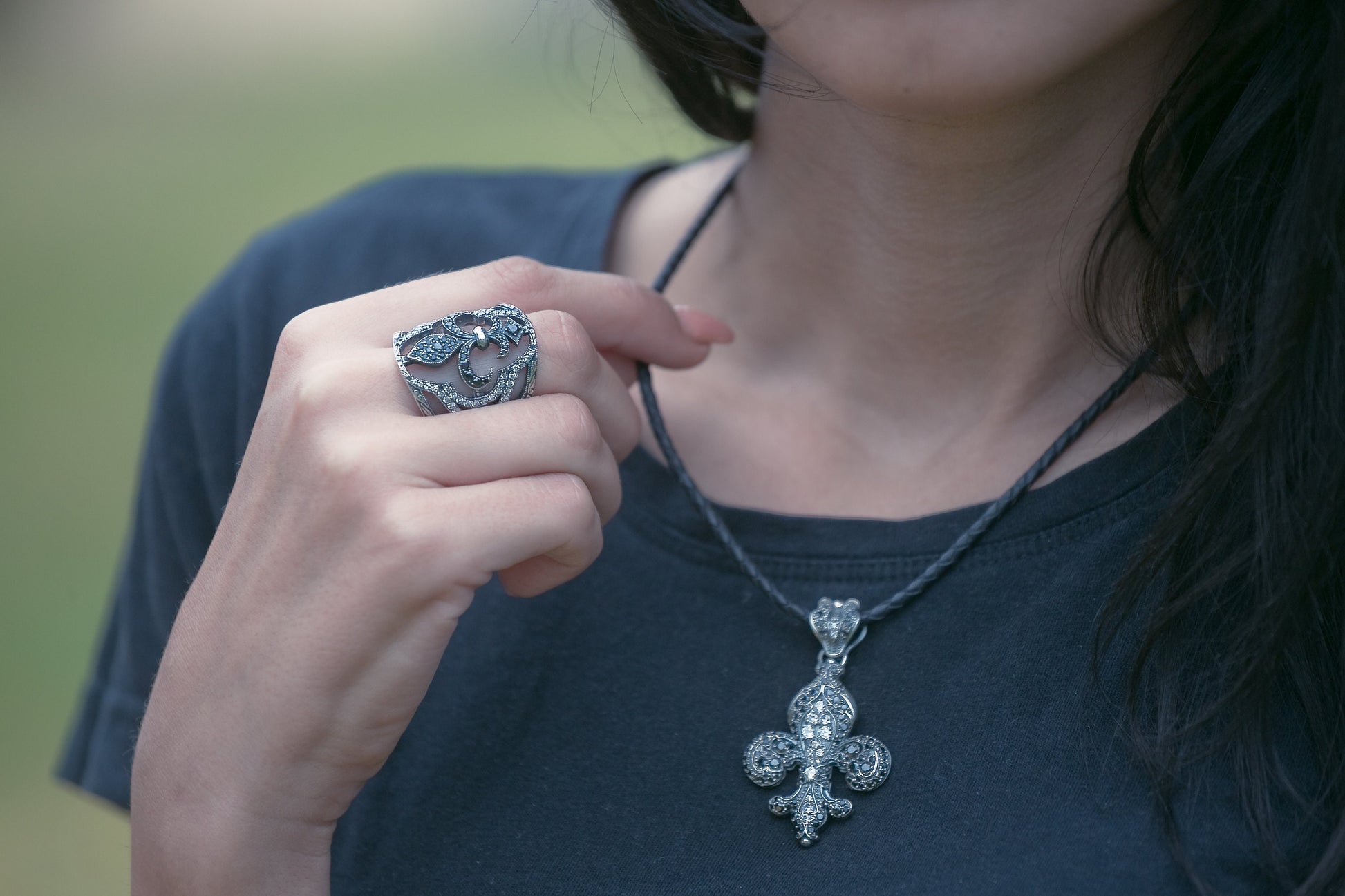 Fleur de Luis pendant, Fleur de lis jewelry, Fleur de lis necklace, Victorian jewelry, Victorian silver pendant, Victorian silver jewelry, Gemstones goth jewelry, Women's Gothic pendant, Biker jewelry, Biker pendant, Women's biker pendant, Mary pendant, Women brutal jewelry, Women brutal pendant, Silver Fleur de Lis - all you can find in our shop - Yeti jewelry