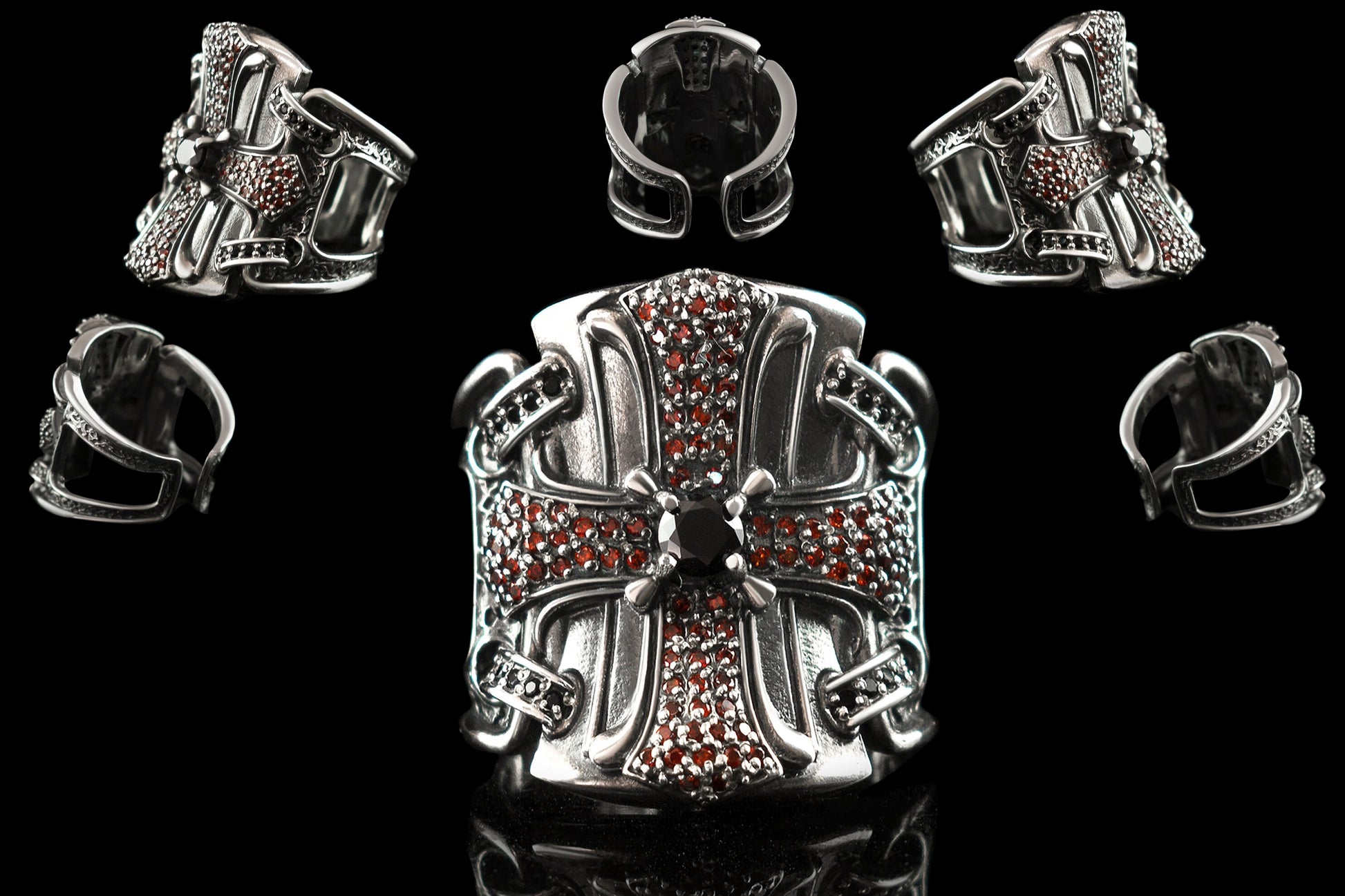 Women's silver ring with gemstones Cross ring Vintage style ring Queen of the Crusaders