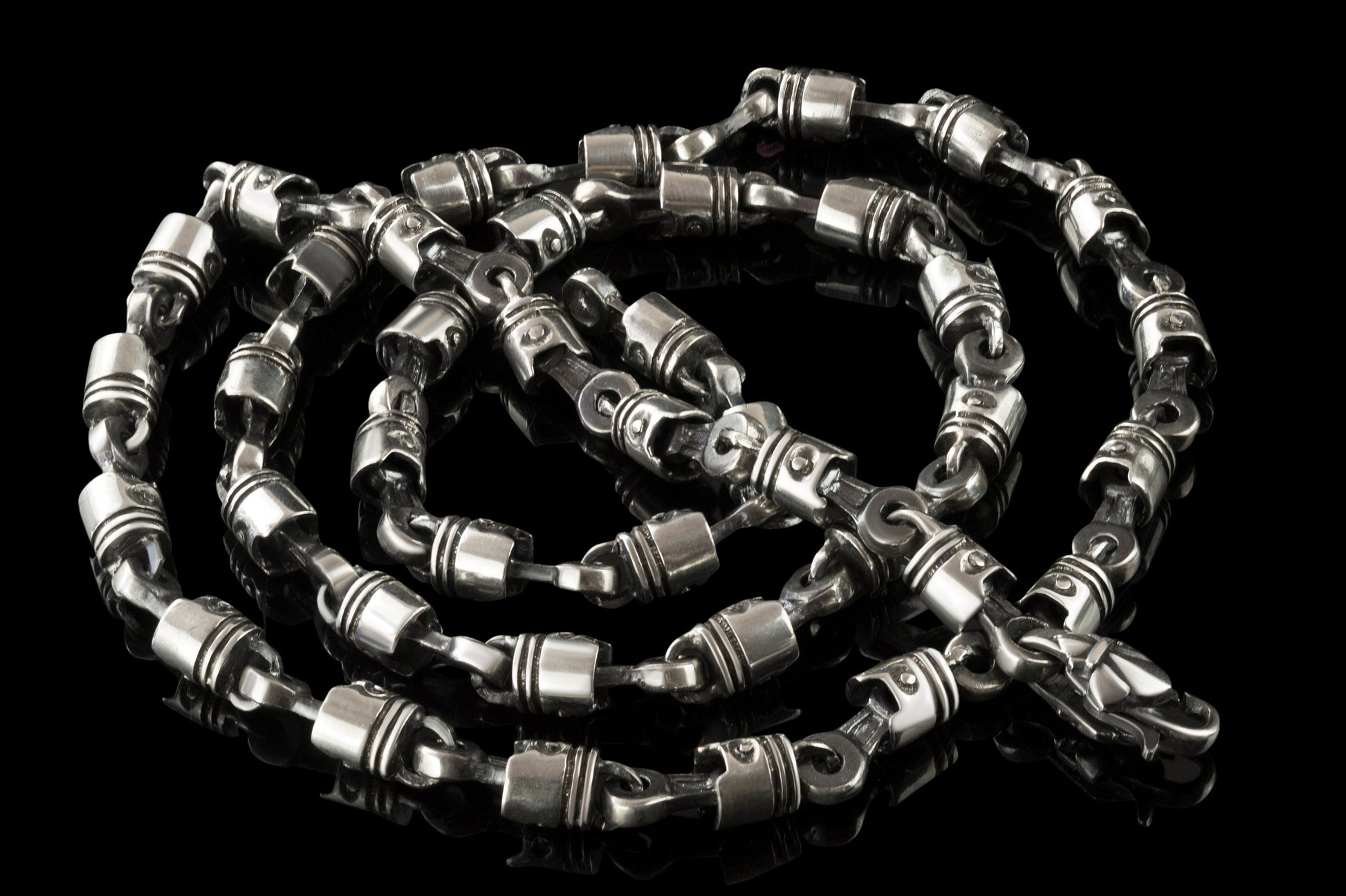 Bikers chain Biker jewelry Men's silver chain Piston Men silver necklace