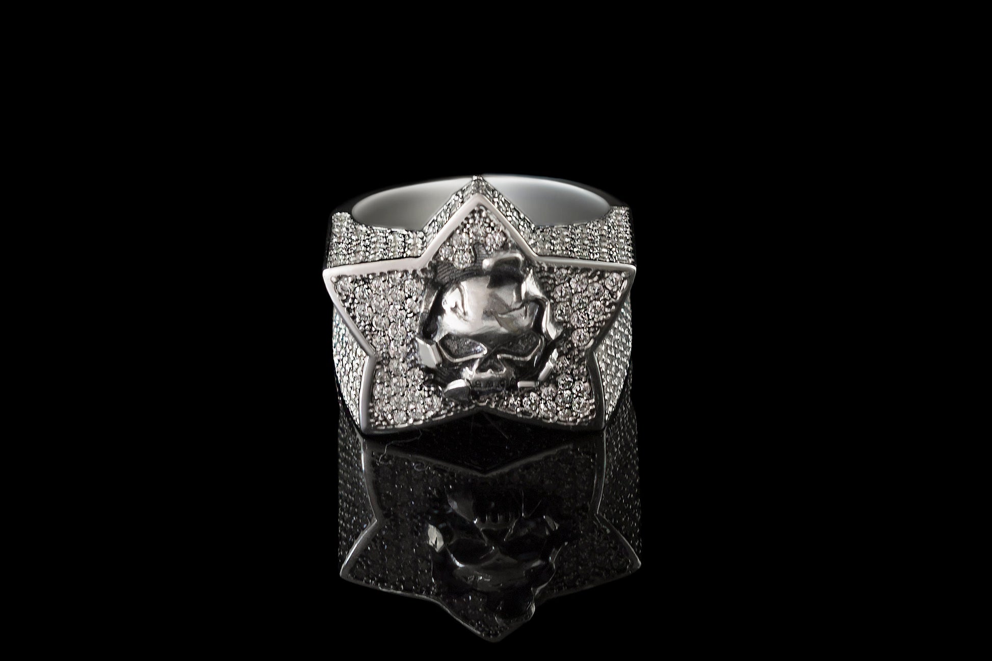 Skull ring, Silver skull ring, Women's skull ring, Star skull ring, Star jewelry, Star ring, Skull jewelry, Women's skull jewelry, Women's silver skull jewelry, Biker jewelry, Biker ring, Biker fashion, Silver Biker fashion, Brutalist jewelry, Brutalist ring, Brutal jewelry, Brutal ring, Brutal fashion, Heavy jewelry, Heavy ring, Heavy women ring - all you can find in our shop - Yeti biker jewelry.