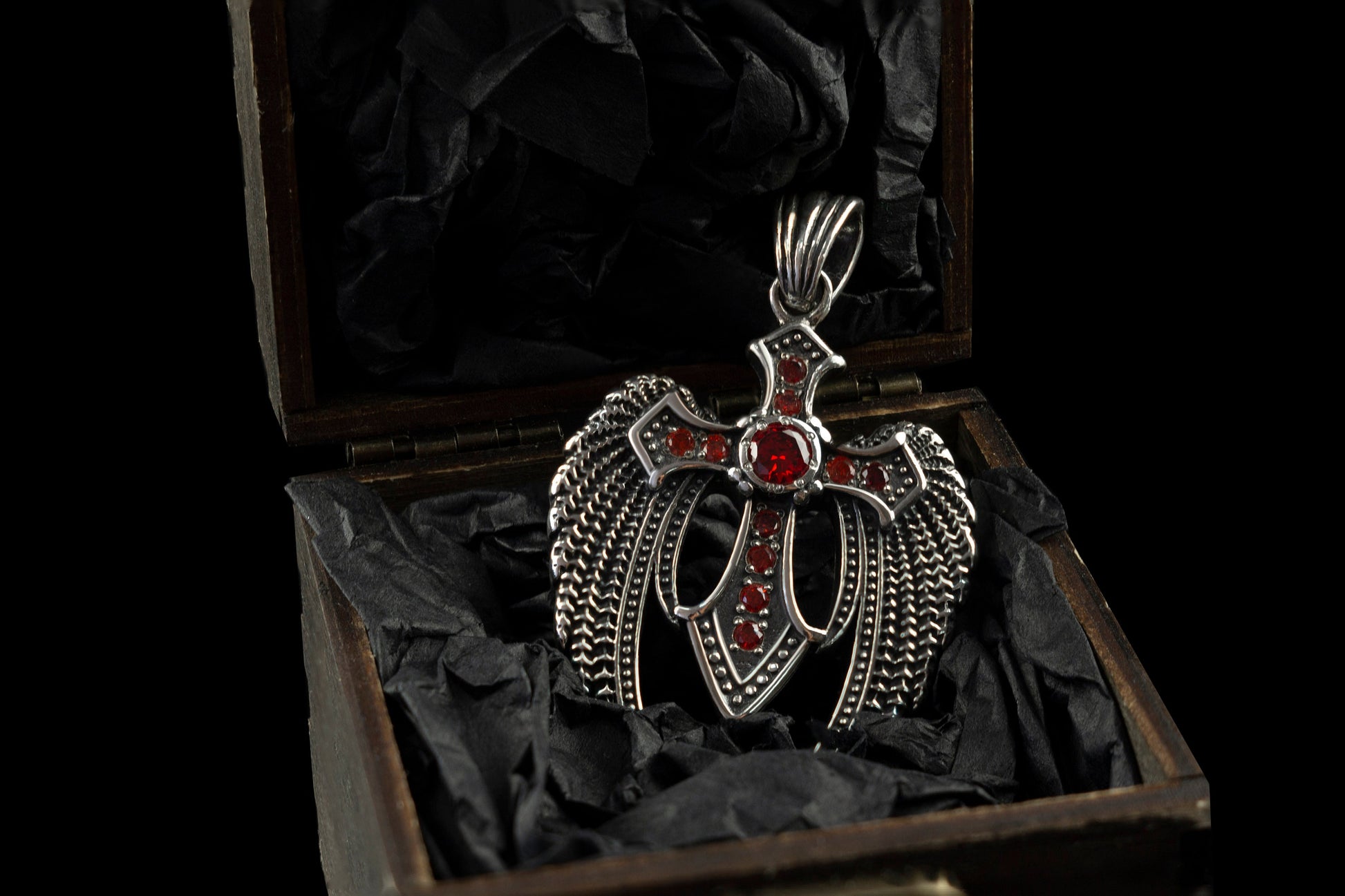 Heavy cross Silver cross pendant Biker jewelry Angel cross Gemstones cross black