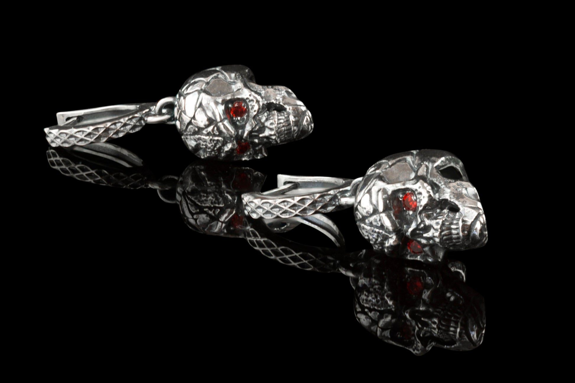 Silver skull earrings Bikers jewelry Skull jewelry Brutal earrings