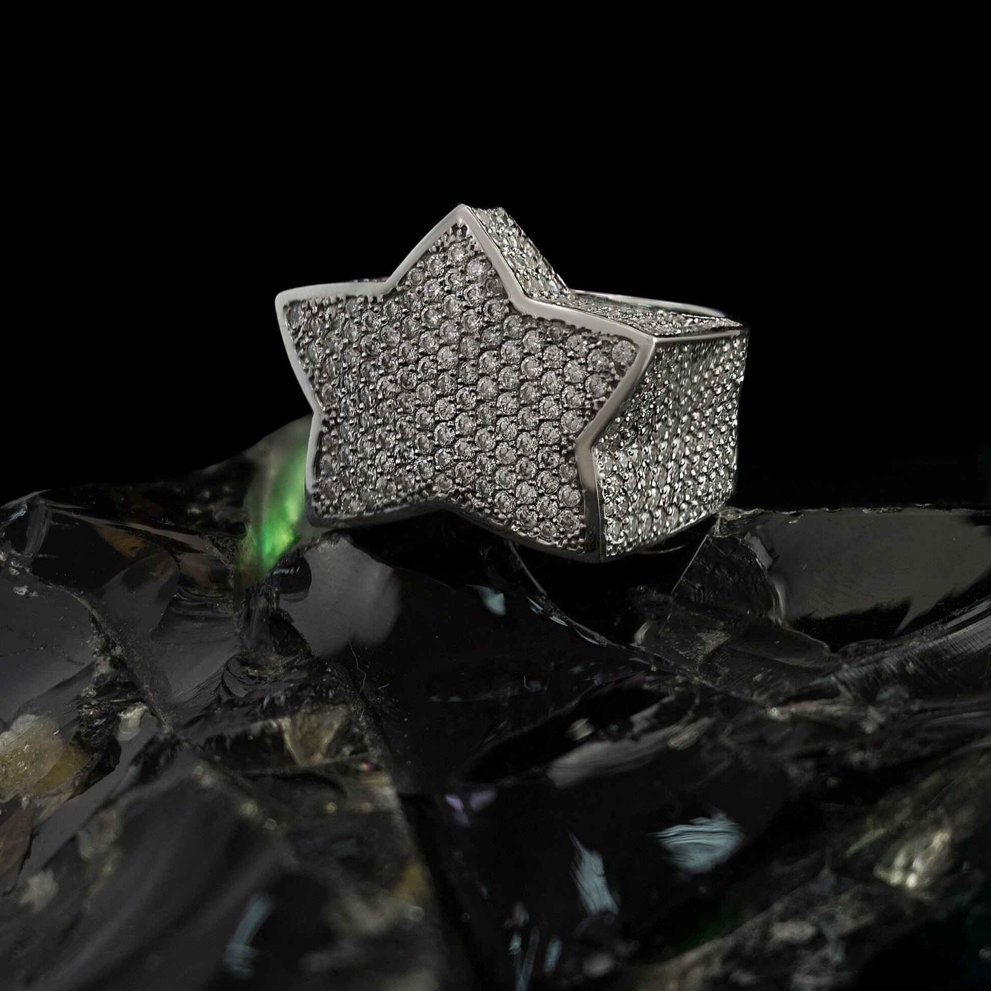 Black star ring Silver star ring Black gemstones ring Asterism ring