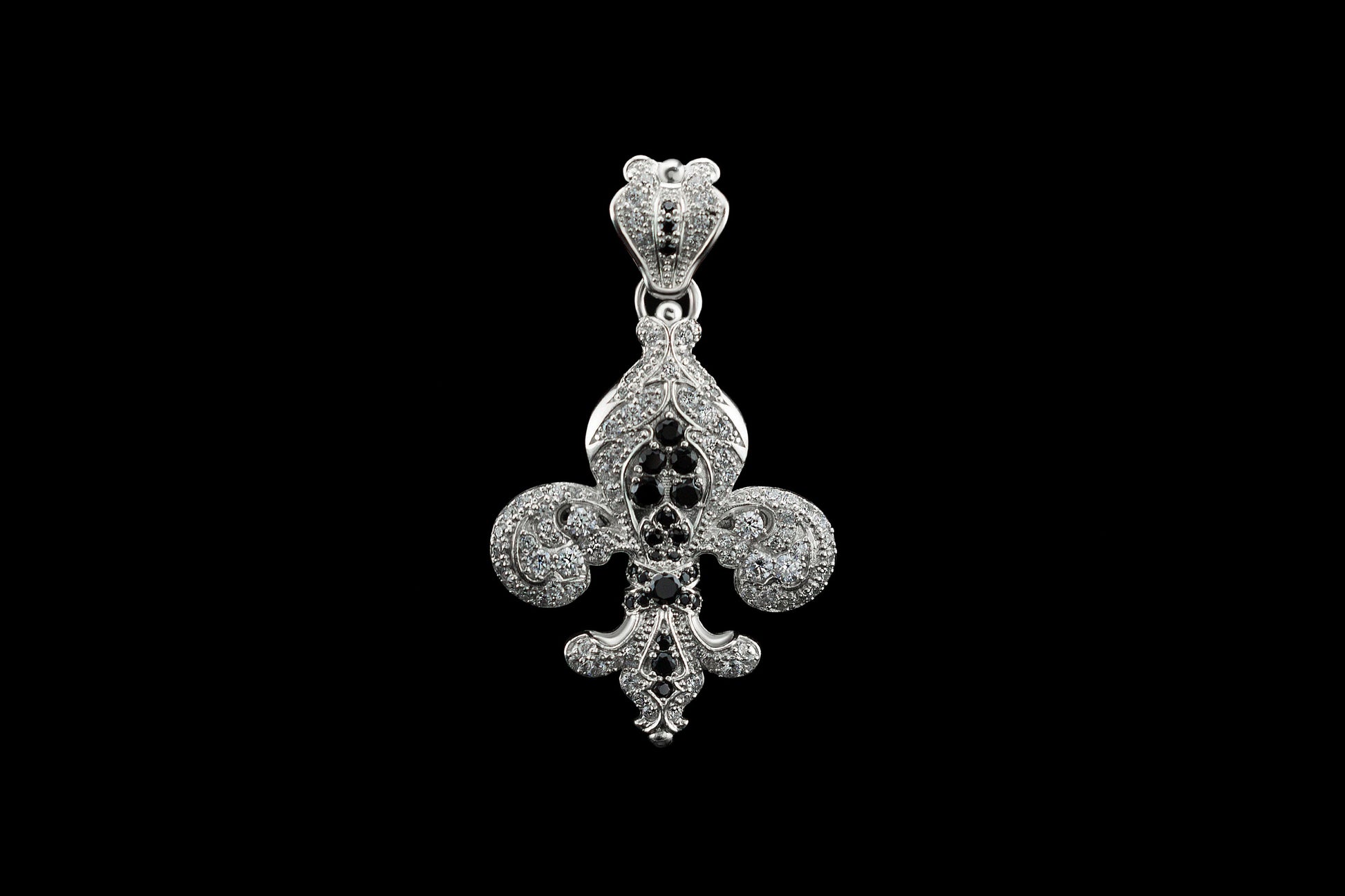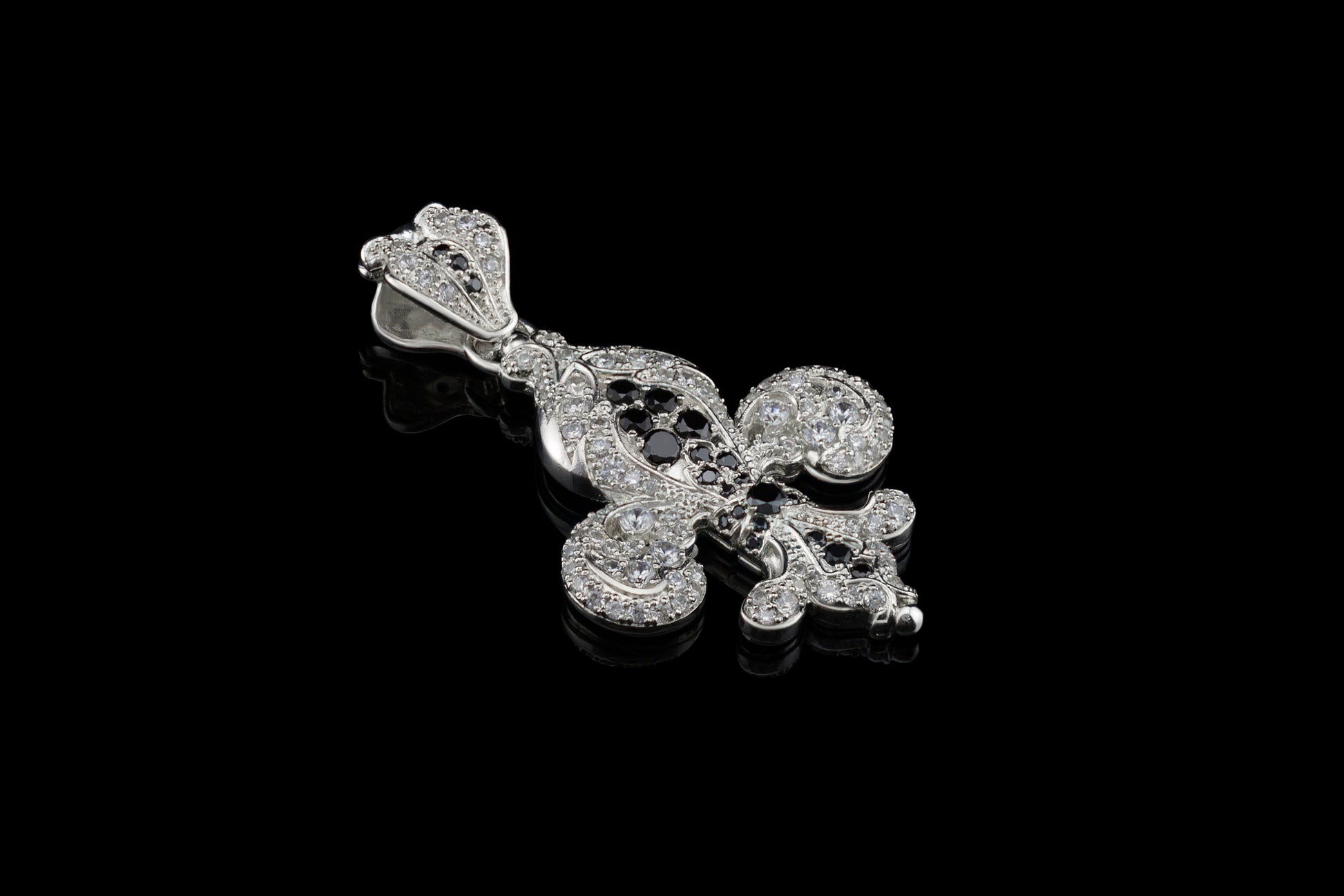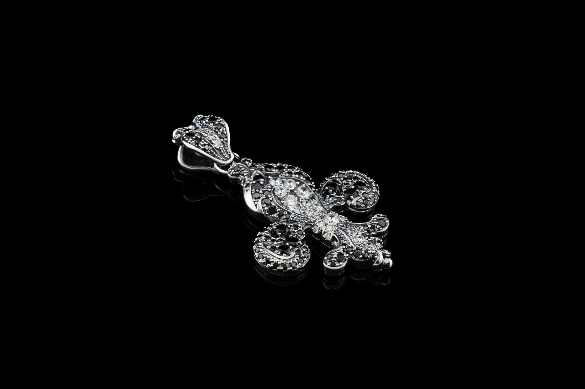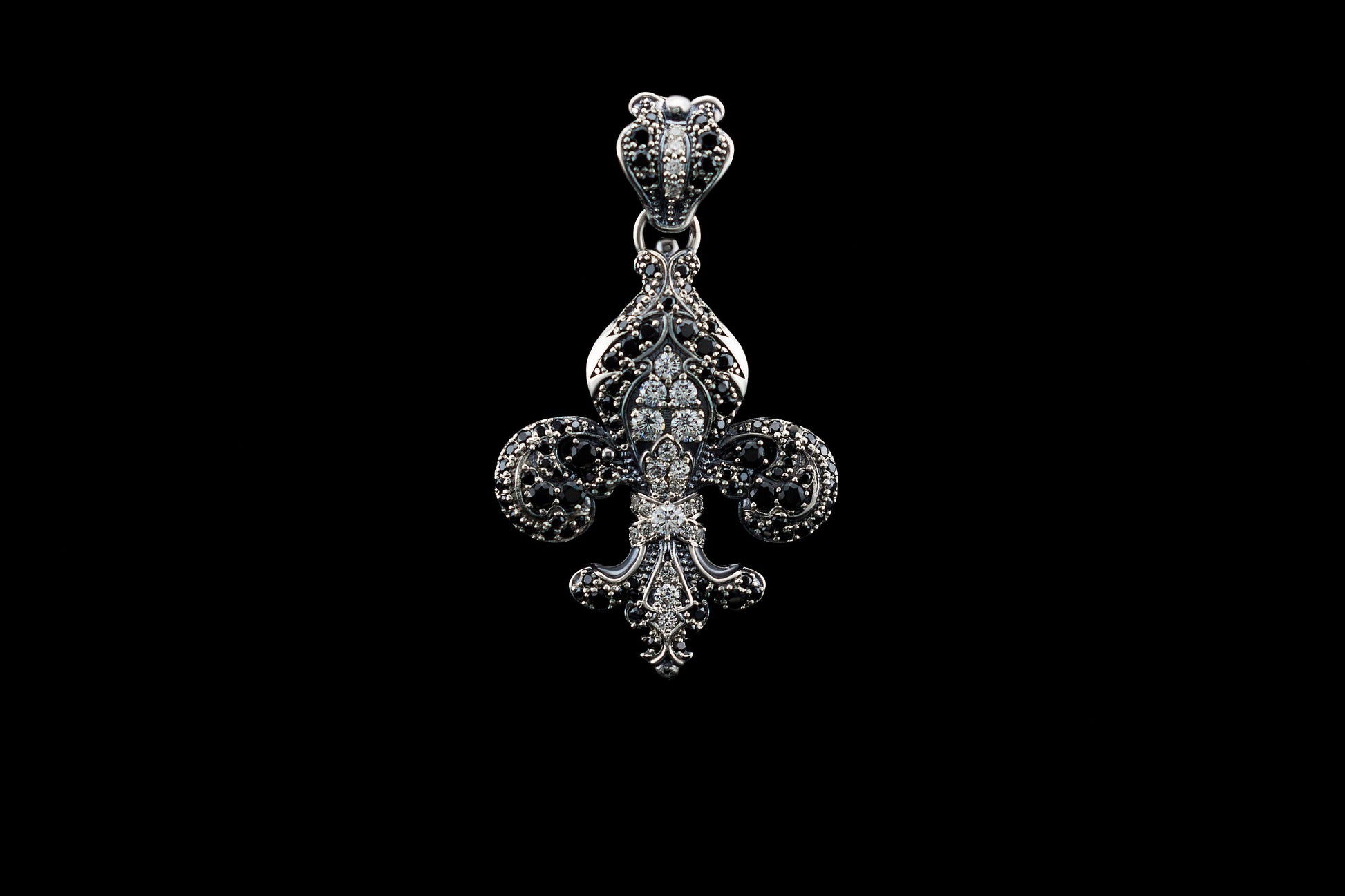 Fleur de Lis silver pendant Mary Gemstones silver pendant Black and white gems