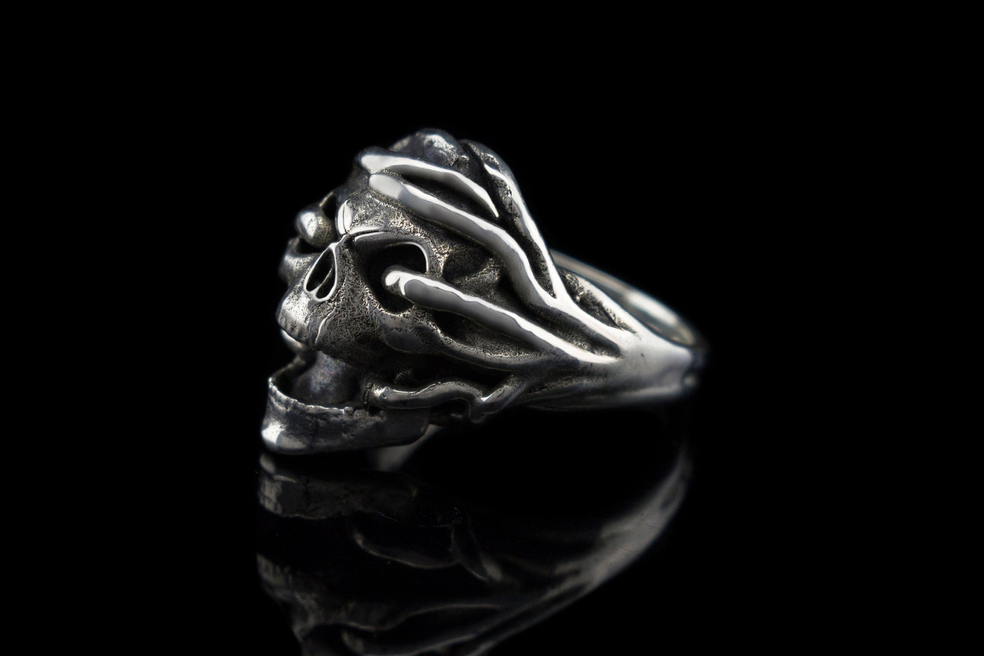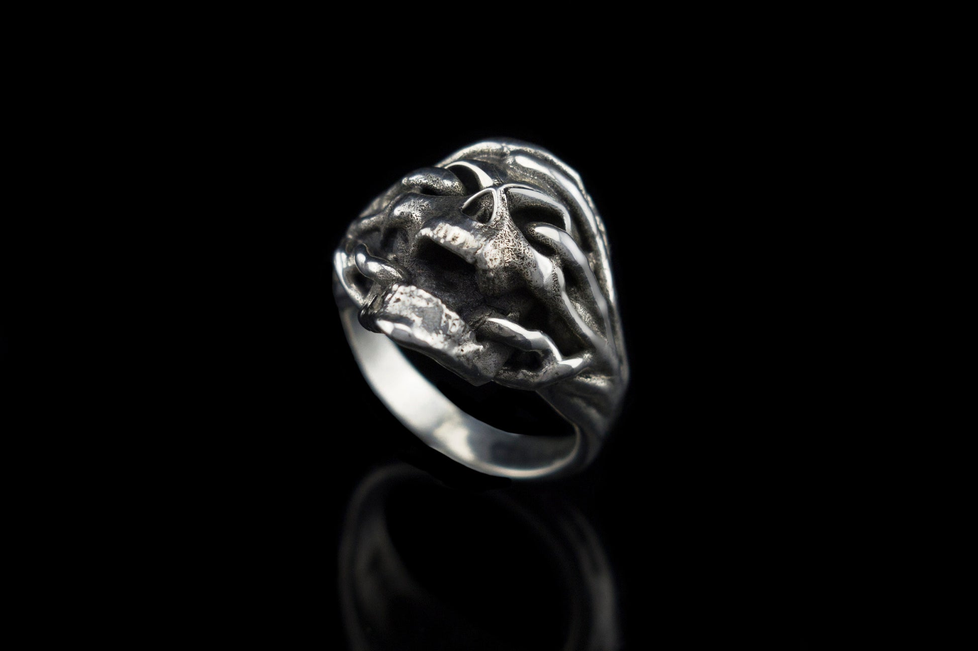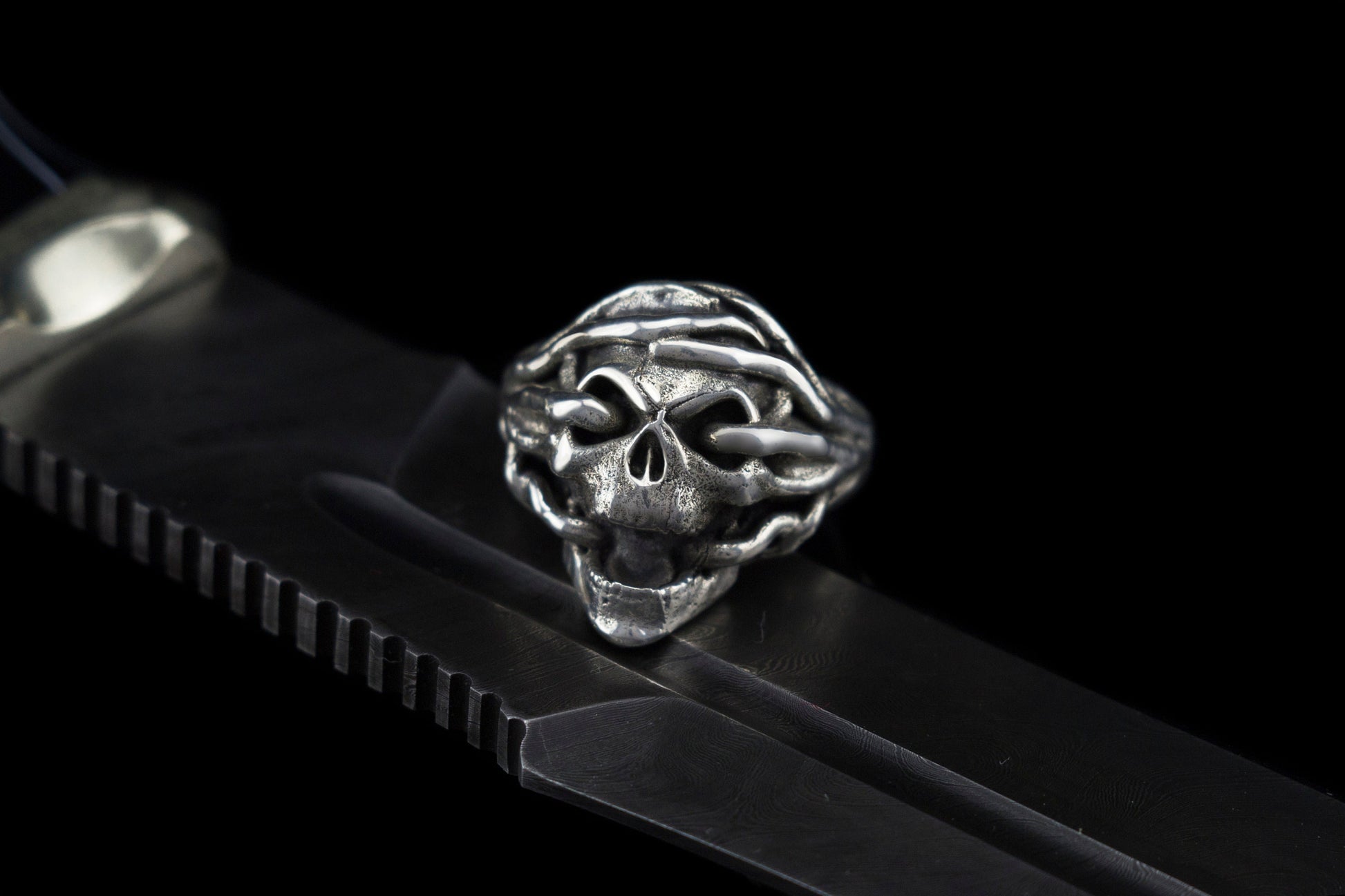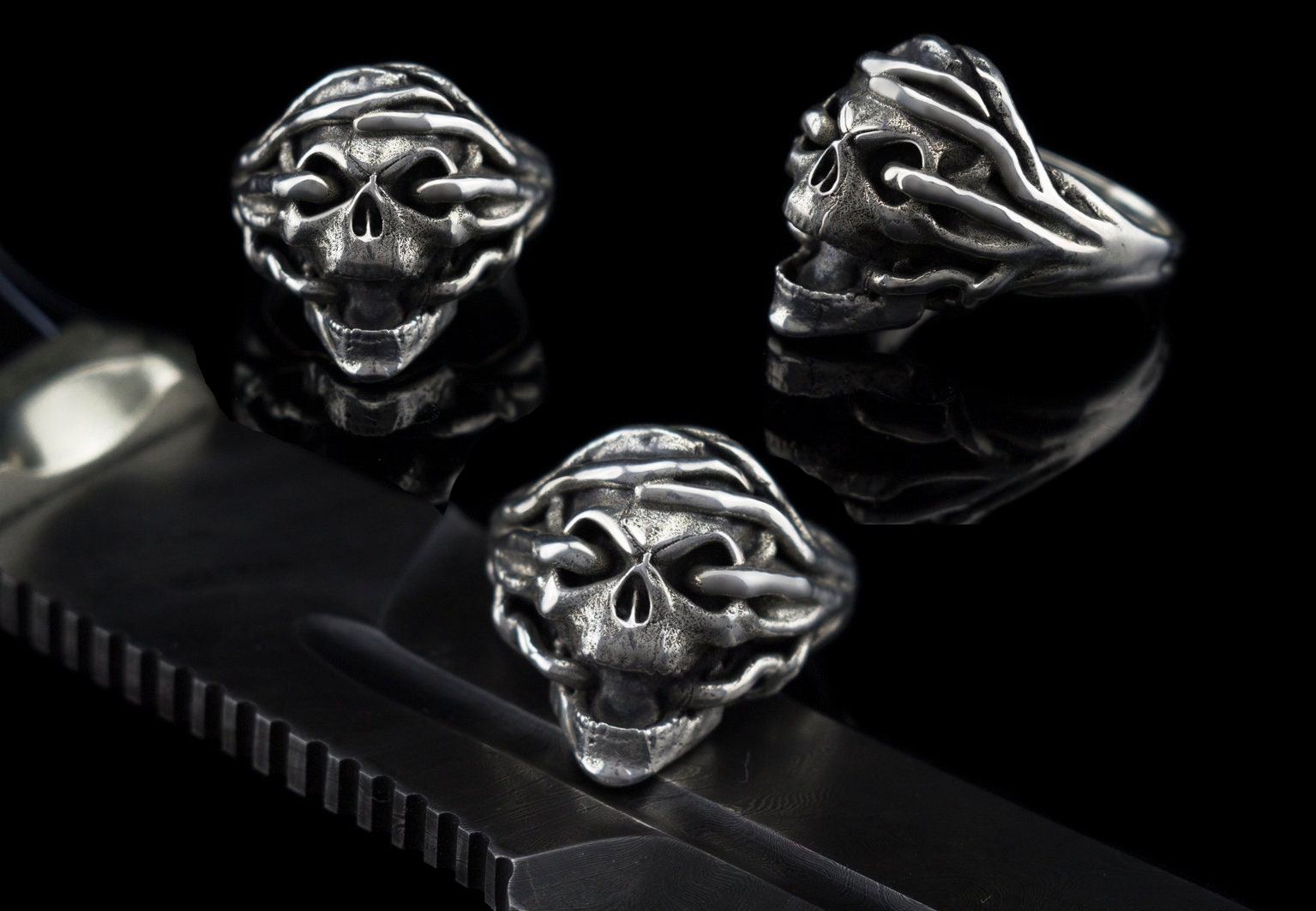 Men's ring Skull ring Silver skull ring Brutalist Skull jewelry for men Biker ring Biker jewelry motorcycle men ring Root