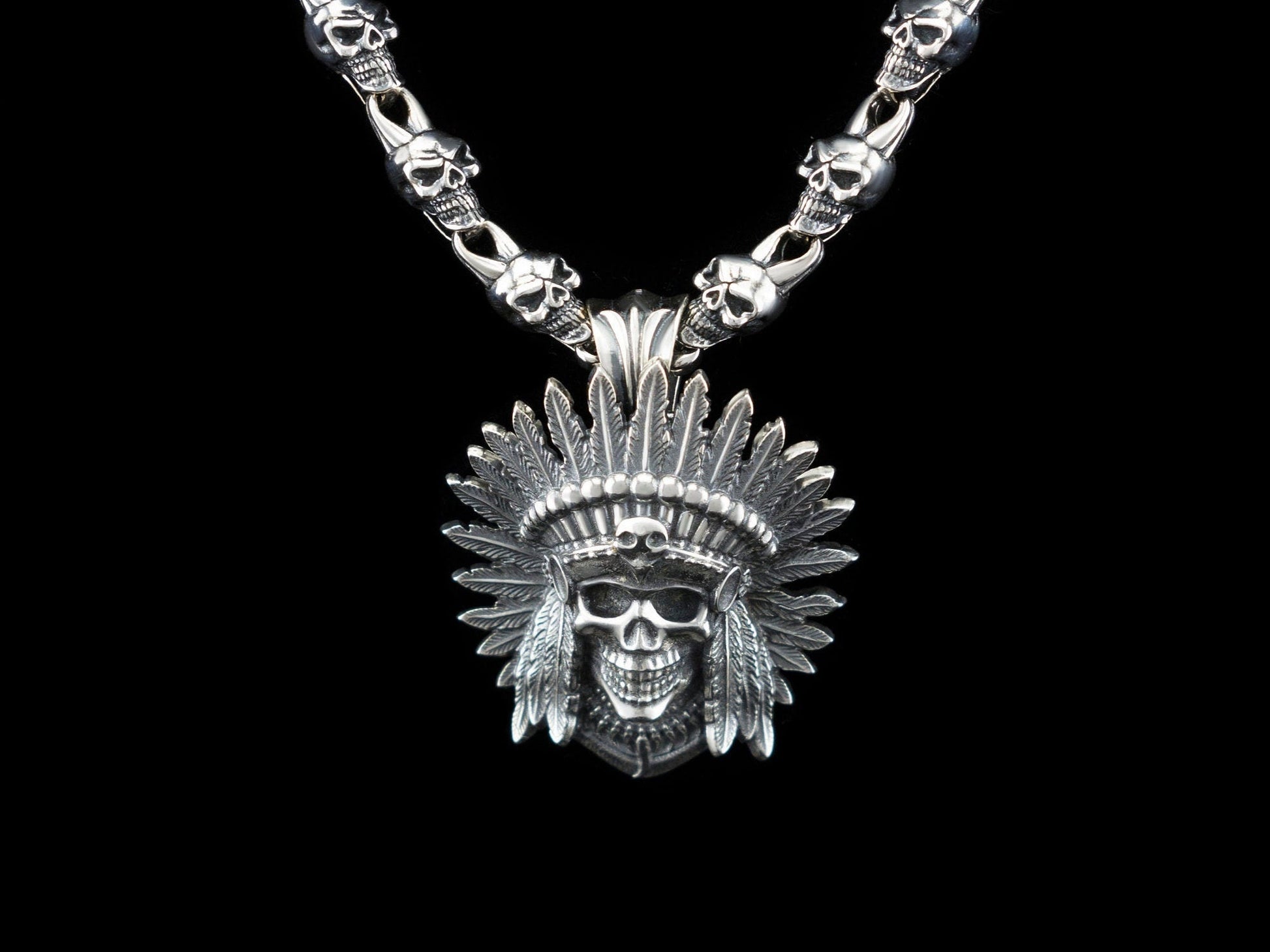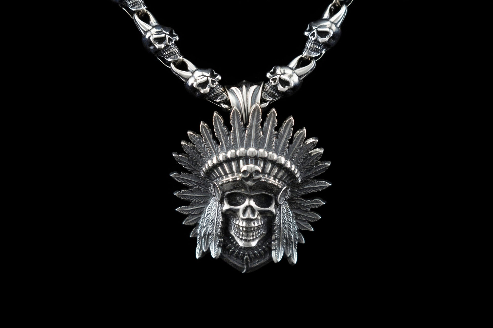 Red Indian Native American Indian Silver pendant American indian Skull indian sterling silver 925 Skull jewelry Skull pendant Bikers jewelry