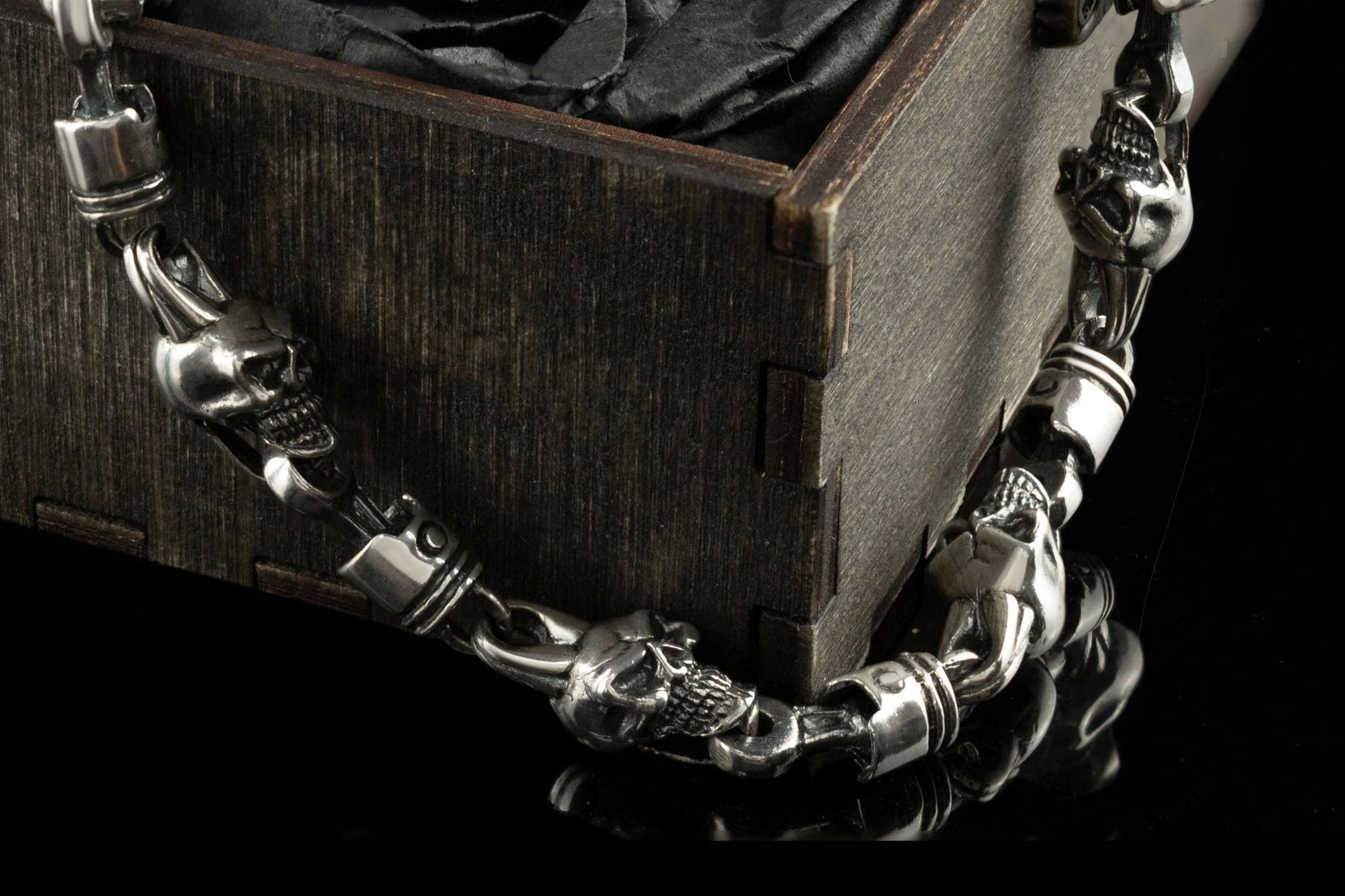 Silver biker bracelet Piston rod and skull bracelet Skull jewelry