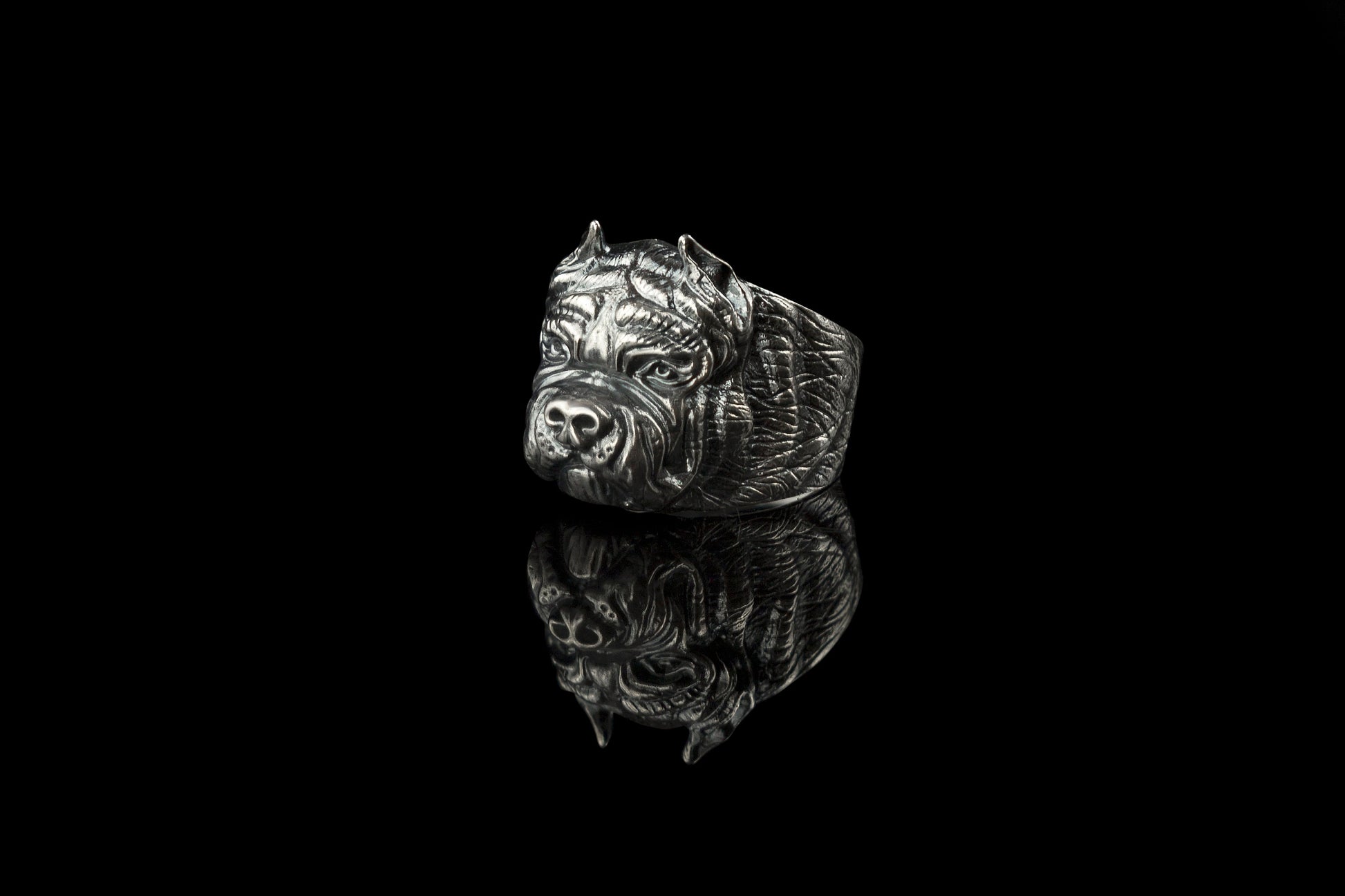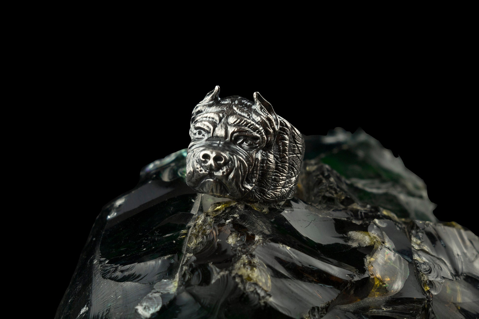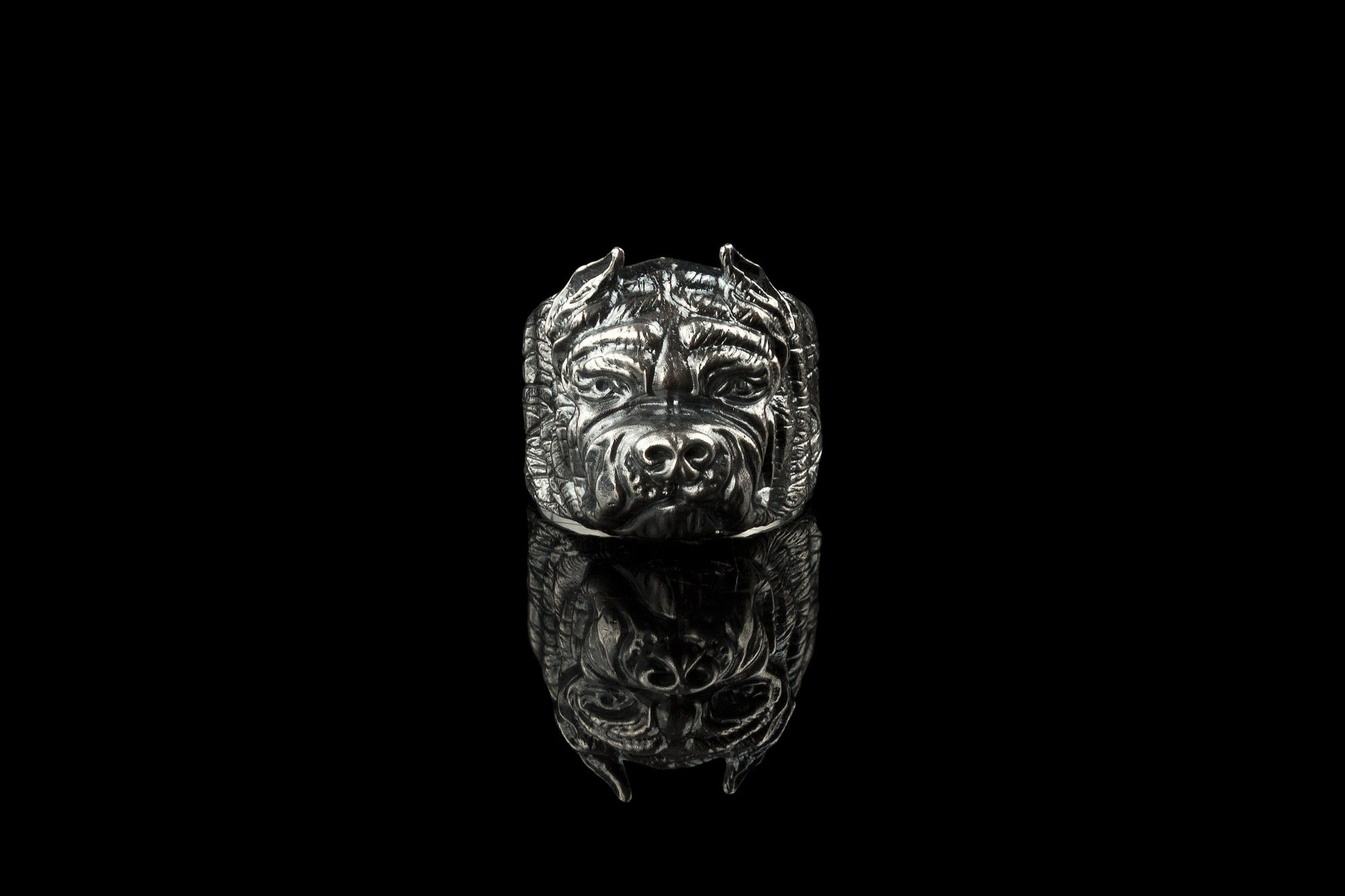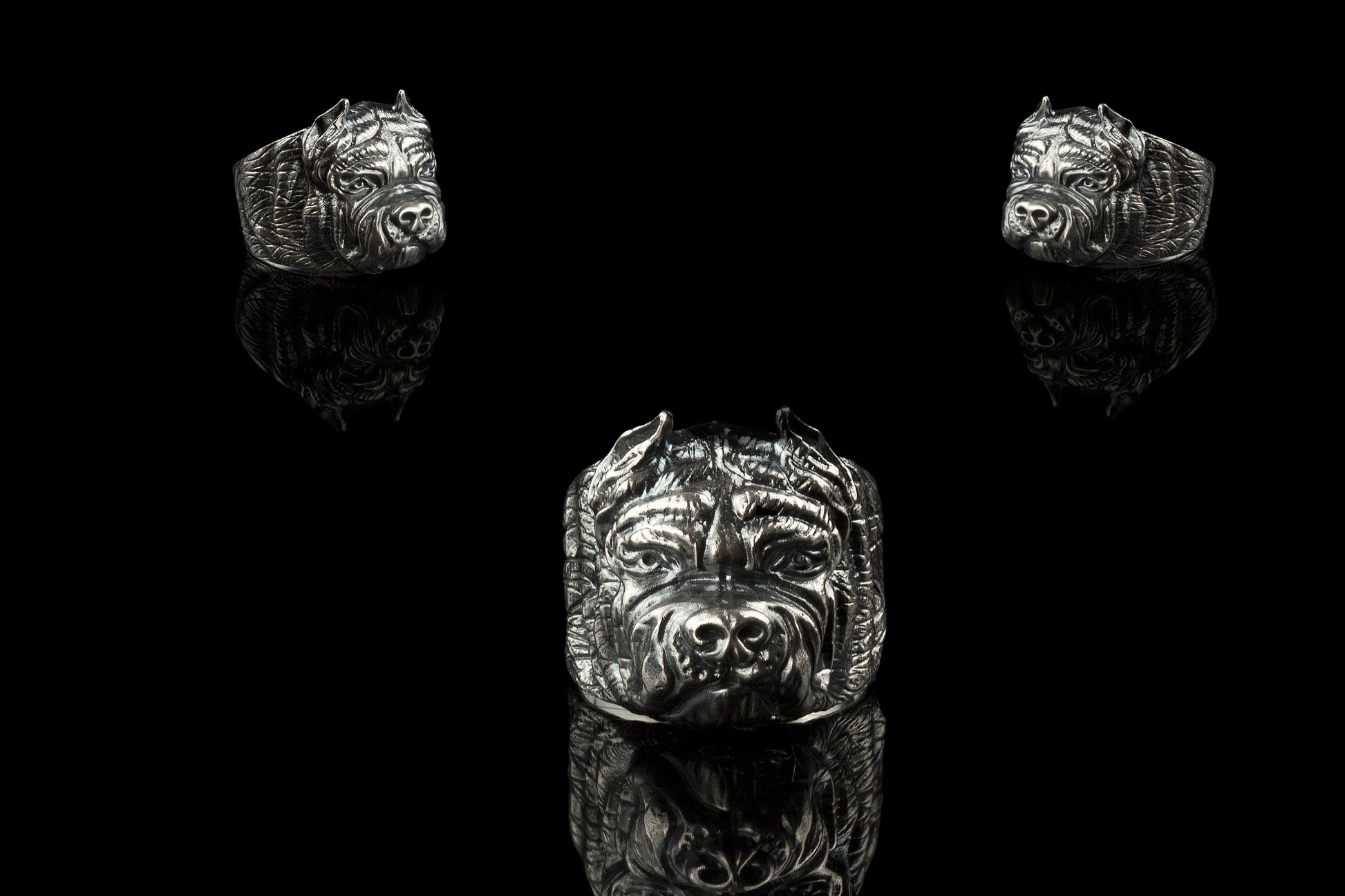 Pitbull ring, Biker ring, Animal ring, Terrier, Bordeaux, Bulldog, man silver ring