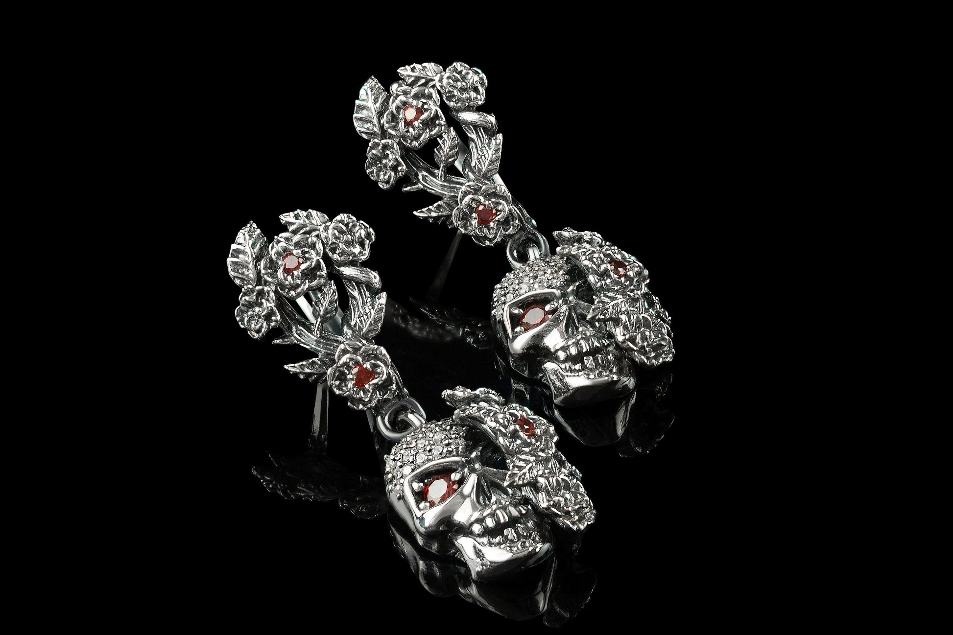 Silver skull earrings Skull jewelry Skull gift for her Skull women jewelry