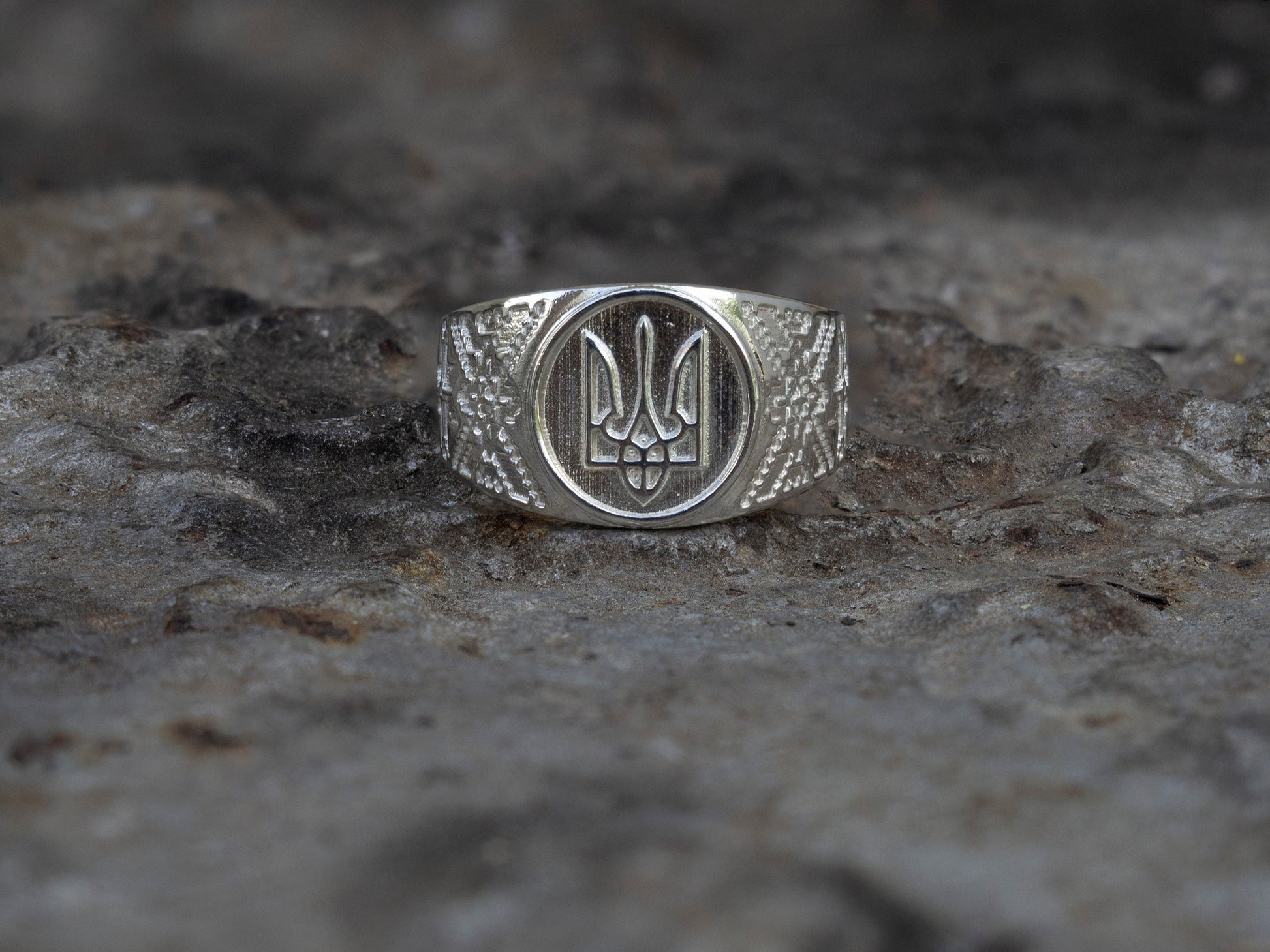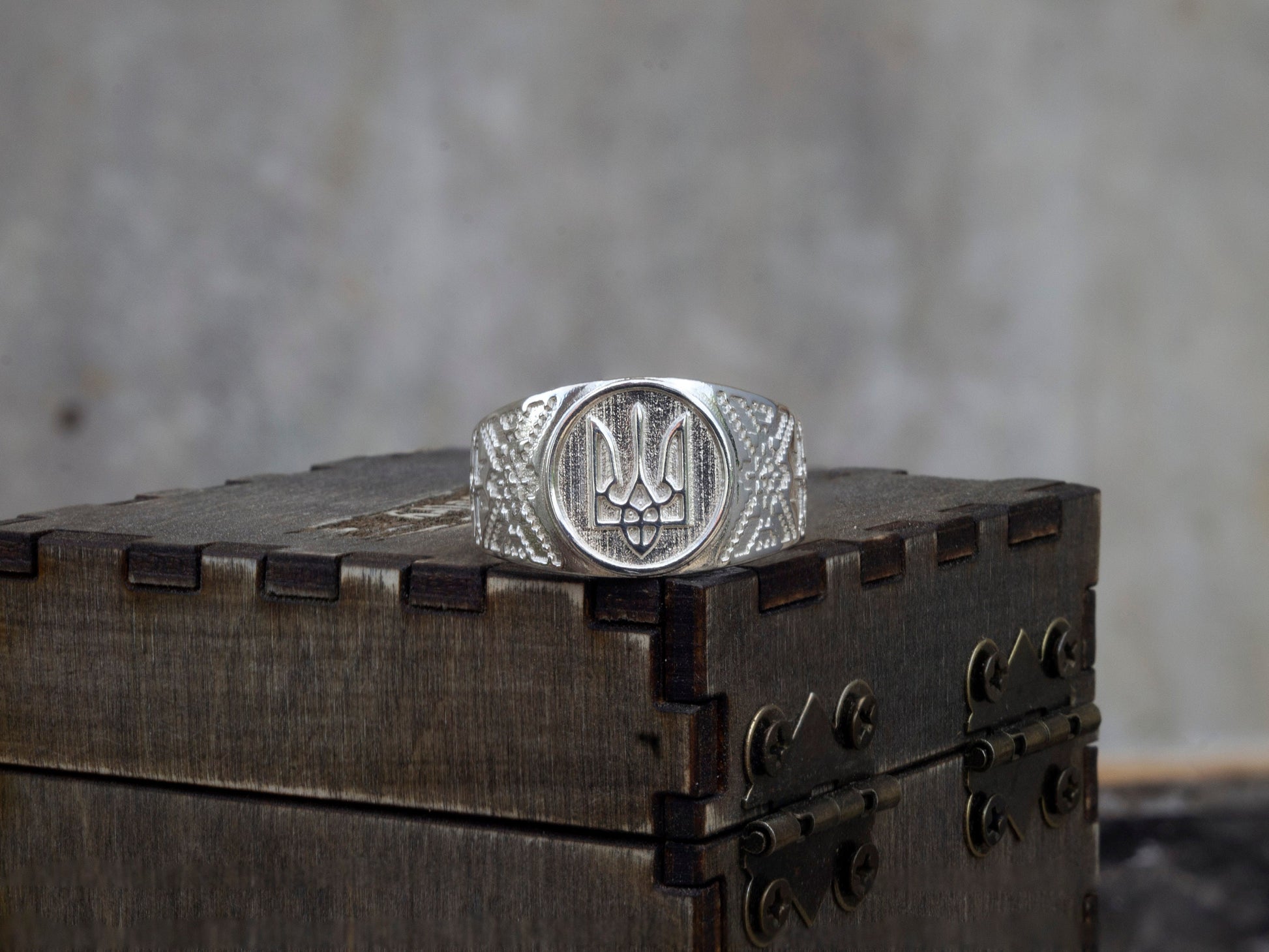 Ukrainian silver ring - Tryzub ith ornament "Trident sword with ornament"