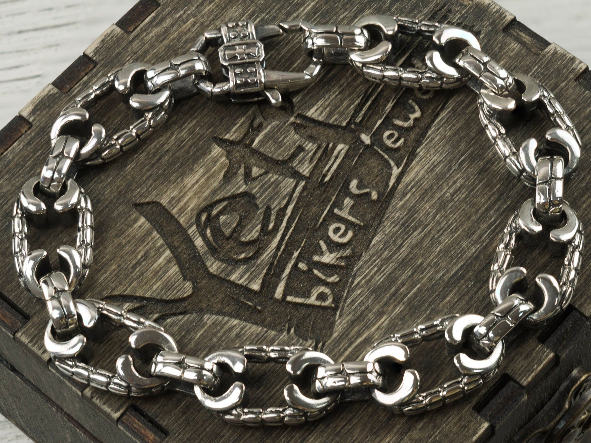 Textured Men's Bracelet reptile Brutalist jewelry Biker silver bracelet 14mm wide bracelet