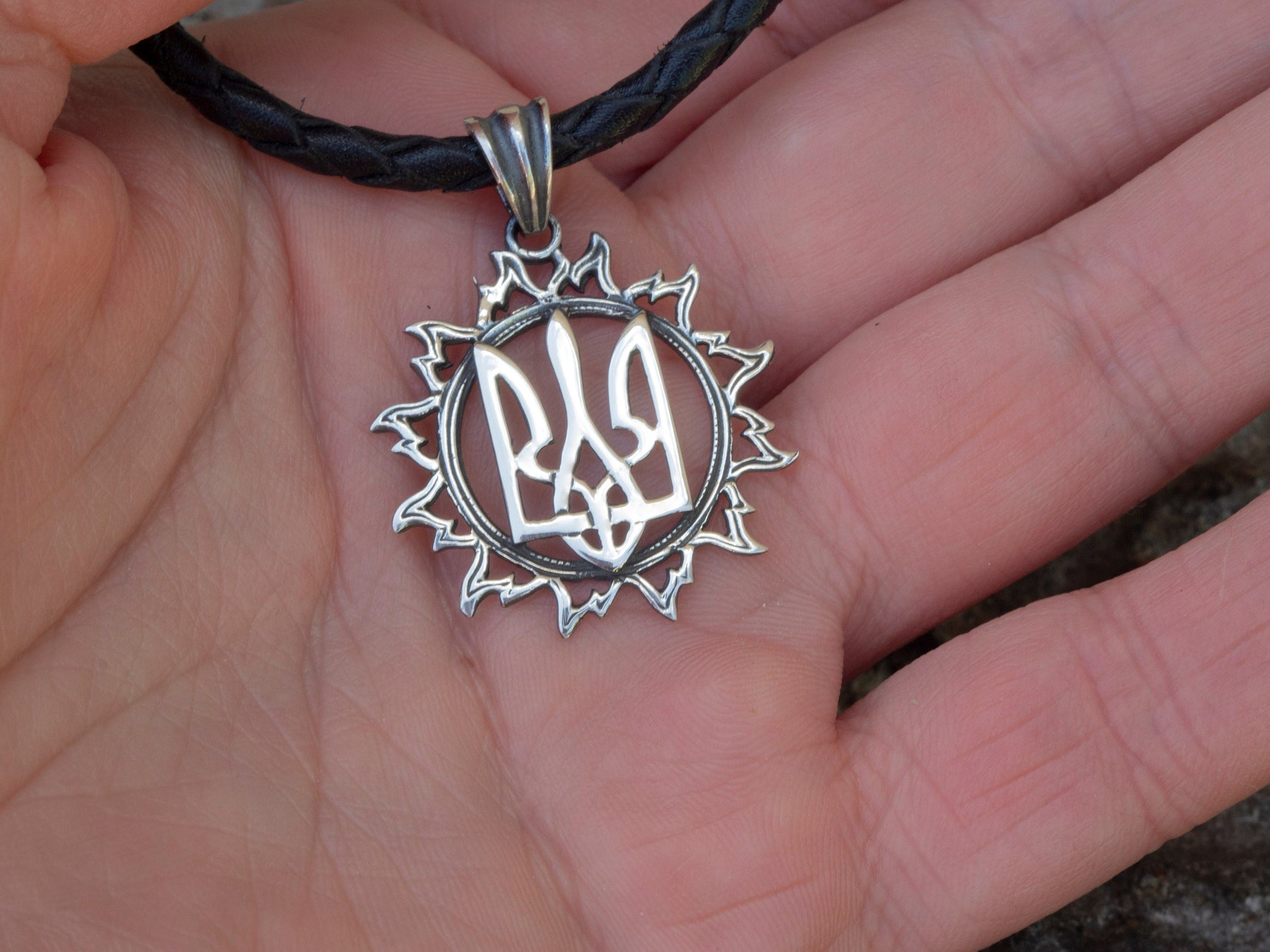 Tryzub pendant Sunny tryzub Silver trident pendant Ukrainian symbols Ukraine jewelry Trident jewelry