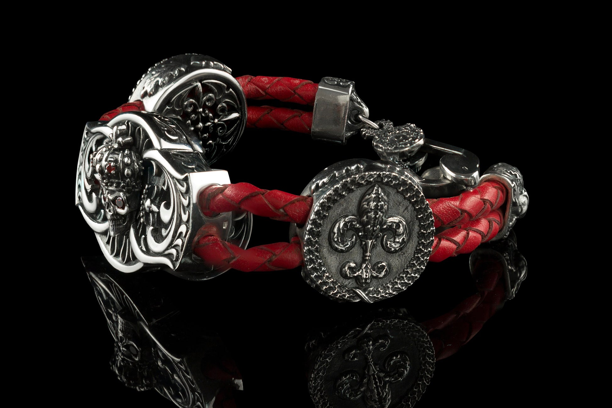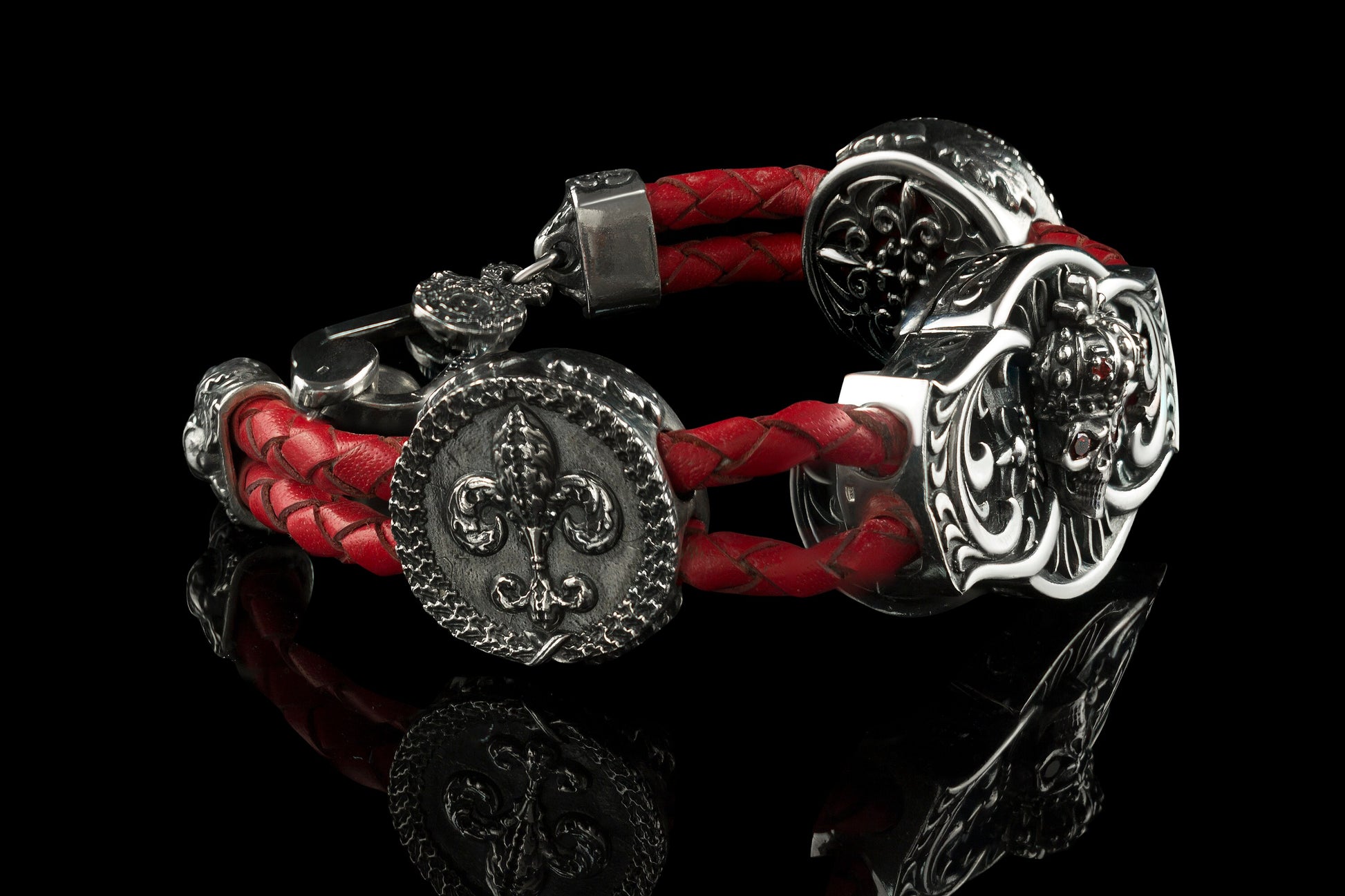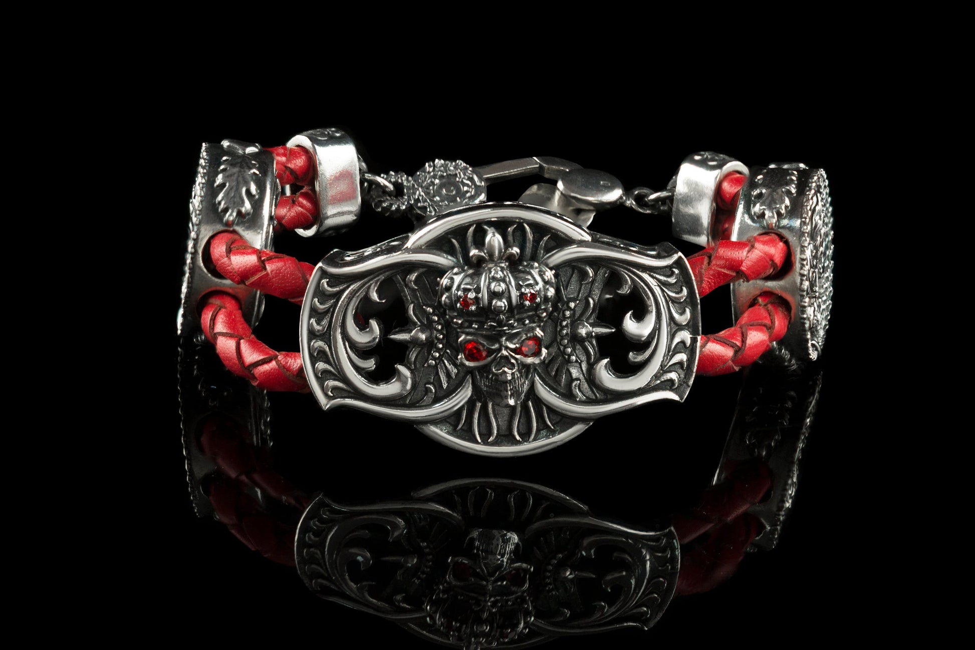 Men's skull bracelet Silver leather skull bracelet Brutalist jewellery Skull jewelru