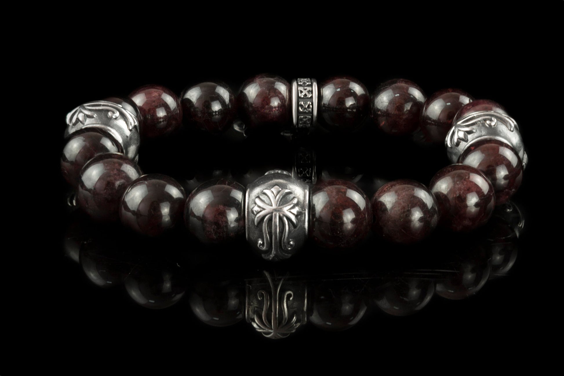 Elastic bracelet, Garnet jewelry, garnet bracelet, Elastic silver bracelet, Medieval cross bracelet, Cross bracelet, Maltese cross bracelet, red bracelet, Red garnet bracelet, Elastic beaded bracelet, Biker jewelry, Biker bracelet, Silver and gemstones bracelet, all you can find in our shop - Yeti biker jewelry.
