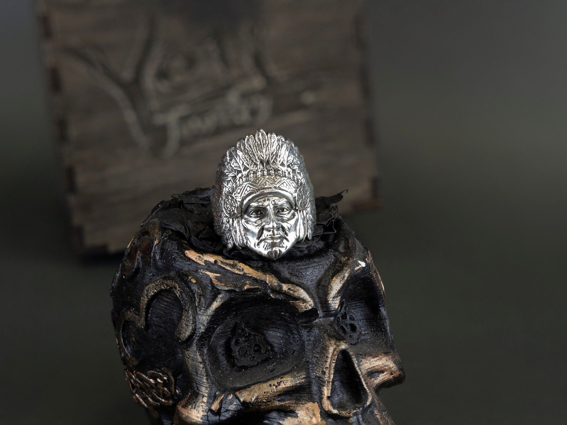 Silver Indian ring Silver Native American Ring with Indian roach headdress Biker jewelry