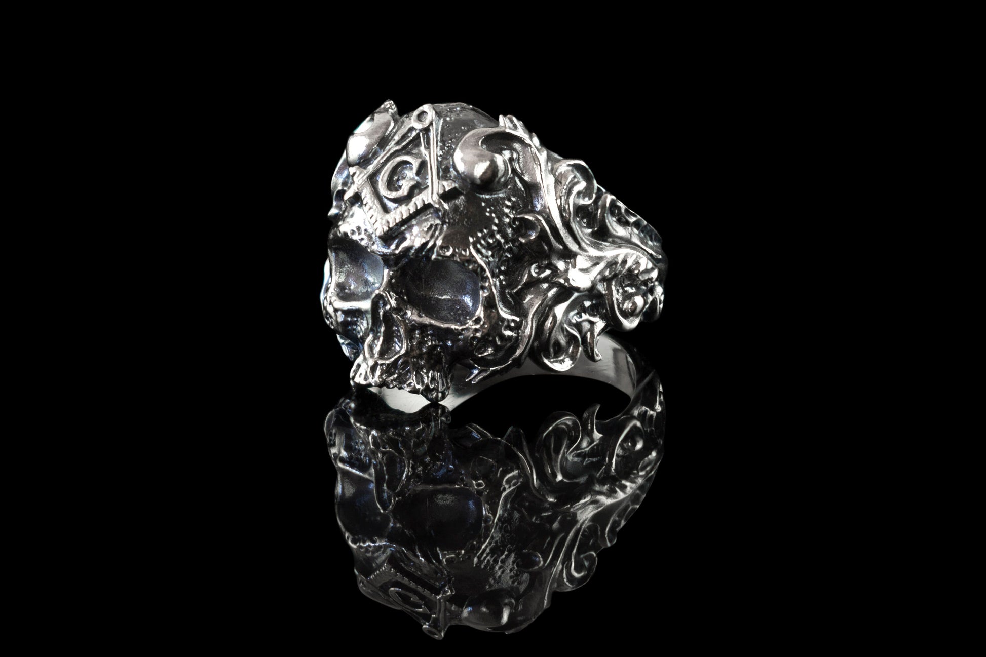 Silver skull ring Biker ring Skull jewelry Masonic ring Silver biker jewelry