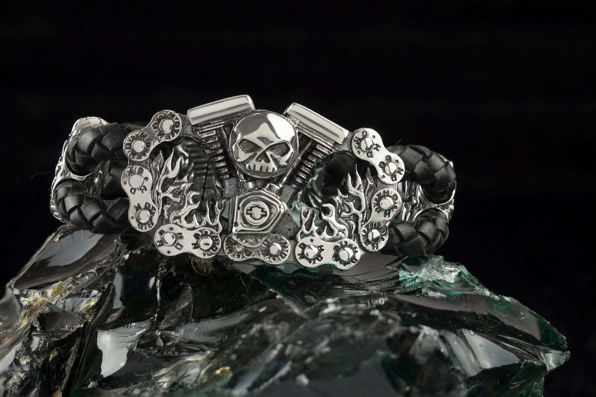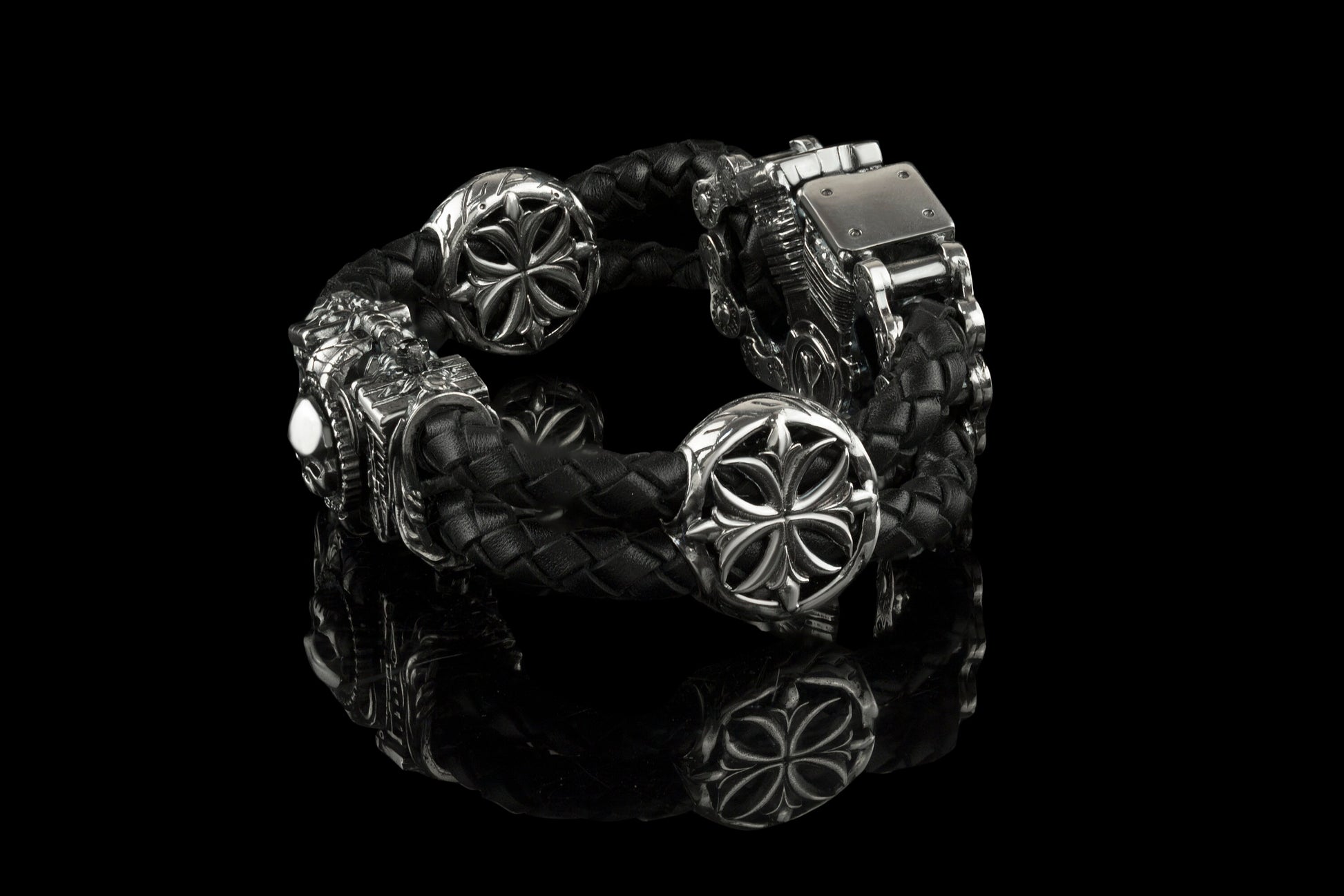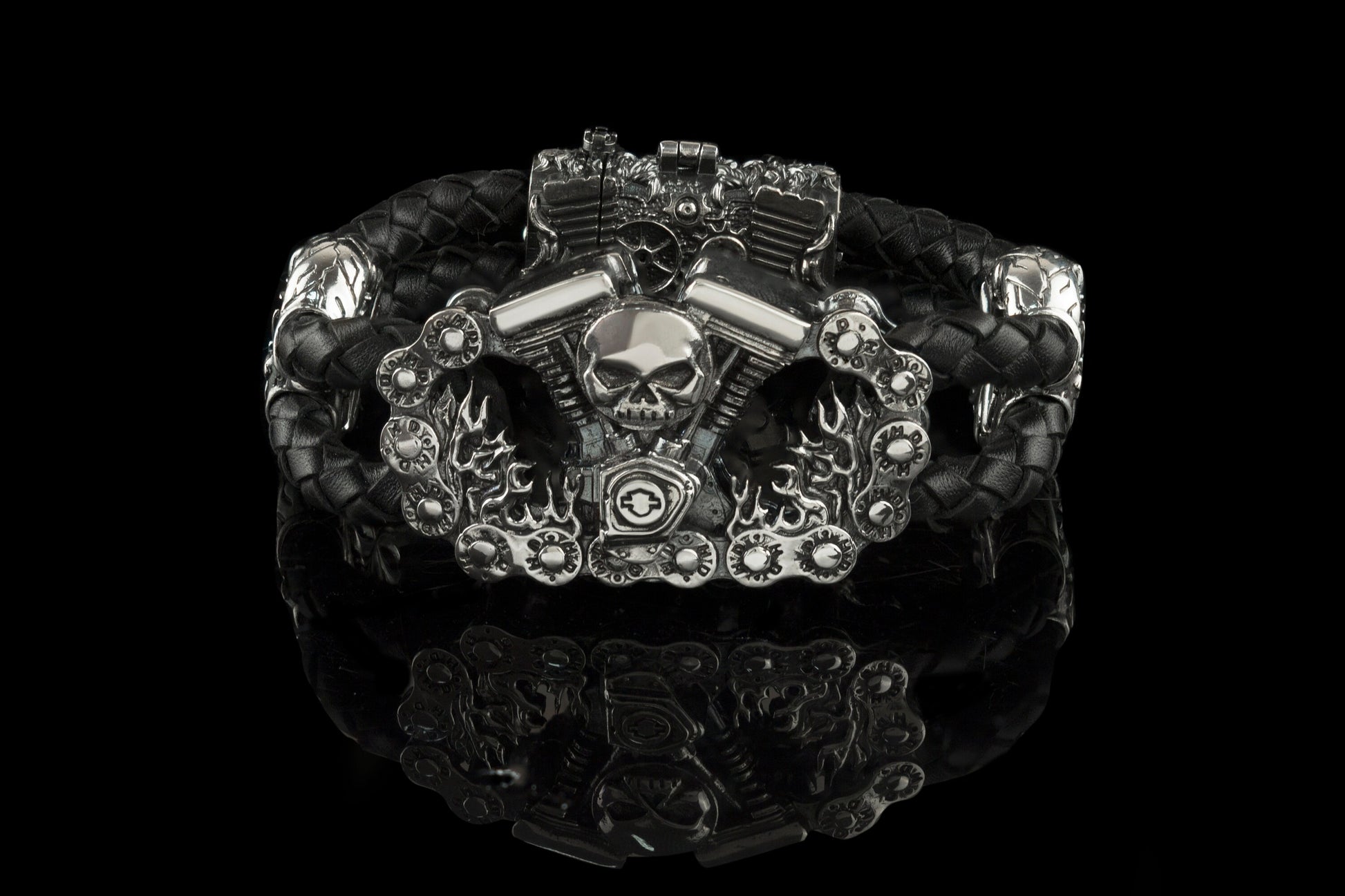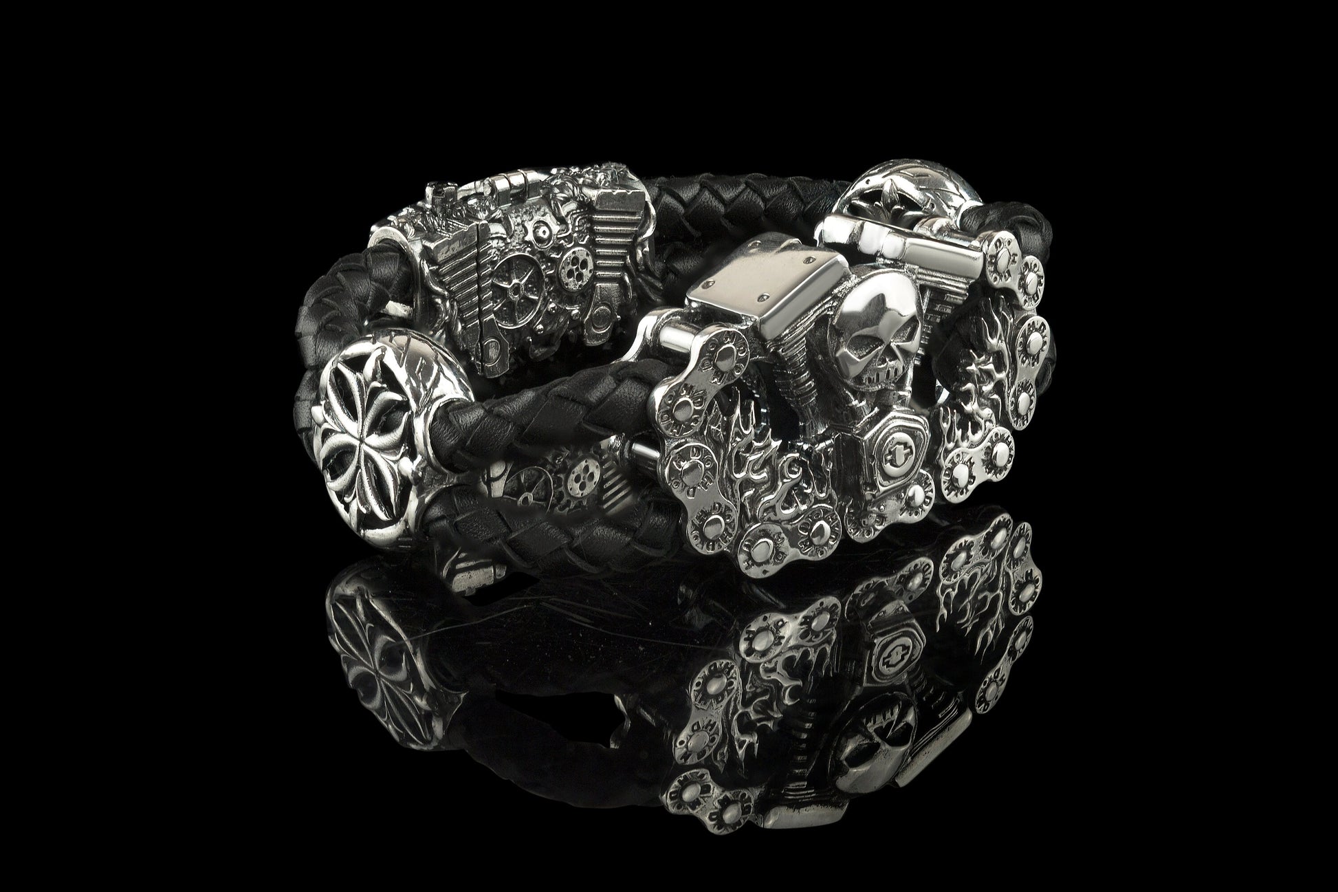 Biker bracelet, Biker jewelry, Brutal bracelet, Brutal jewelry, Heavy men bracelet, Leather biker bracelet, Silver biker bracelet, Skull bracelet, Skull jewelry, Skull silver bracelet, Brutalist style, Biker style, Silver and leather bracelet, V-twin, V-twin bracelet - all you can find in our shop - Yeti bikers jewelry