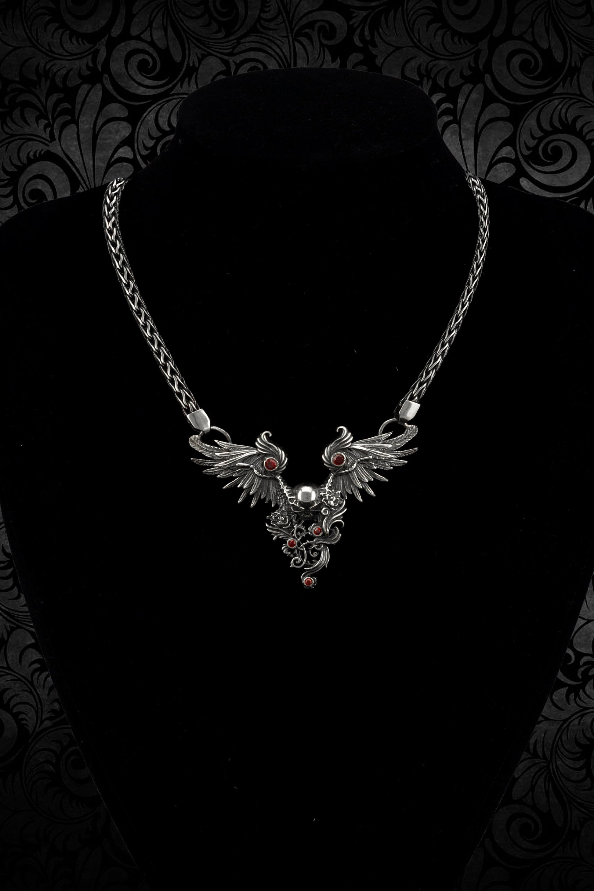 Skull necklace Wings skull Silver skull pendant Skull with wings Gothic jewelry Dark Angel