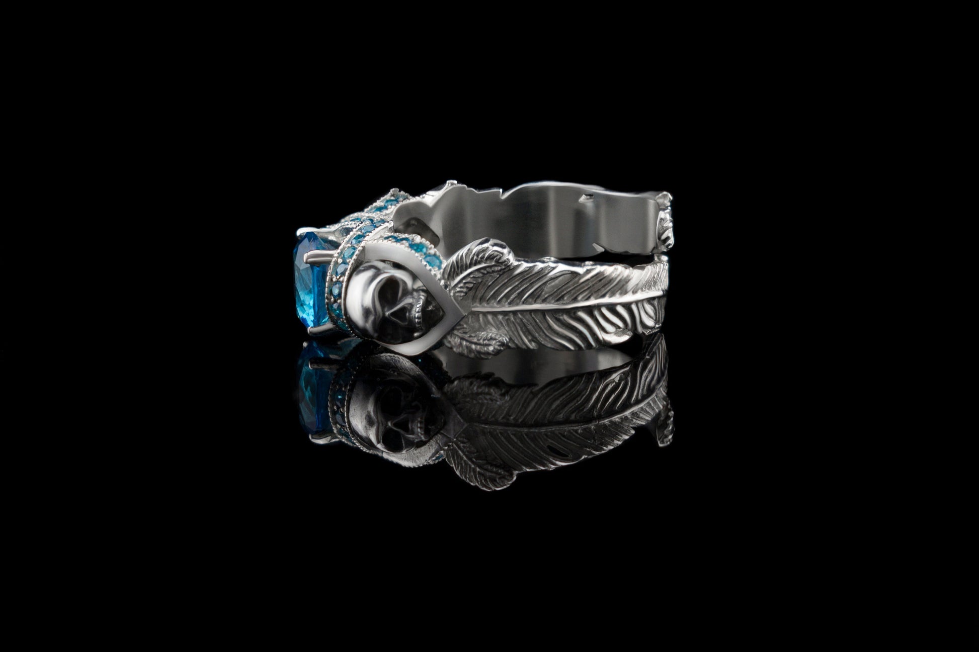 Skull ring Women's silver skull ring Adjustable ring Skull jewelry Feather Women's jewelry Gothic jewelry