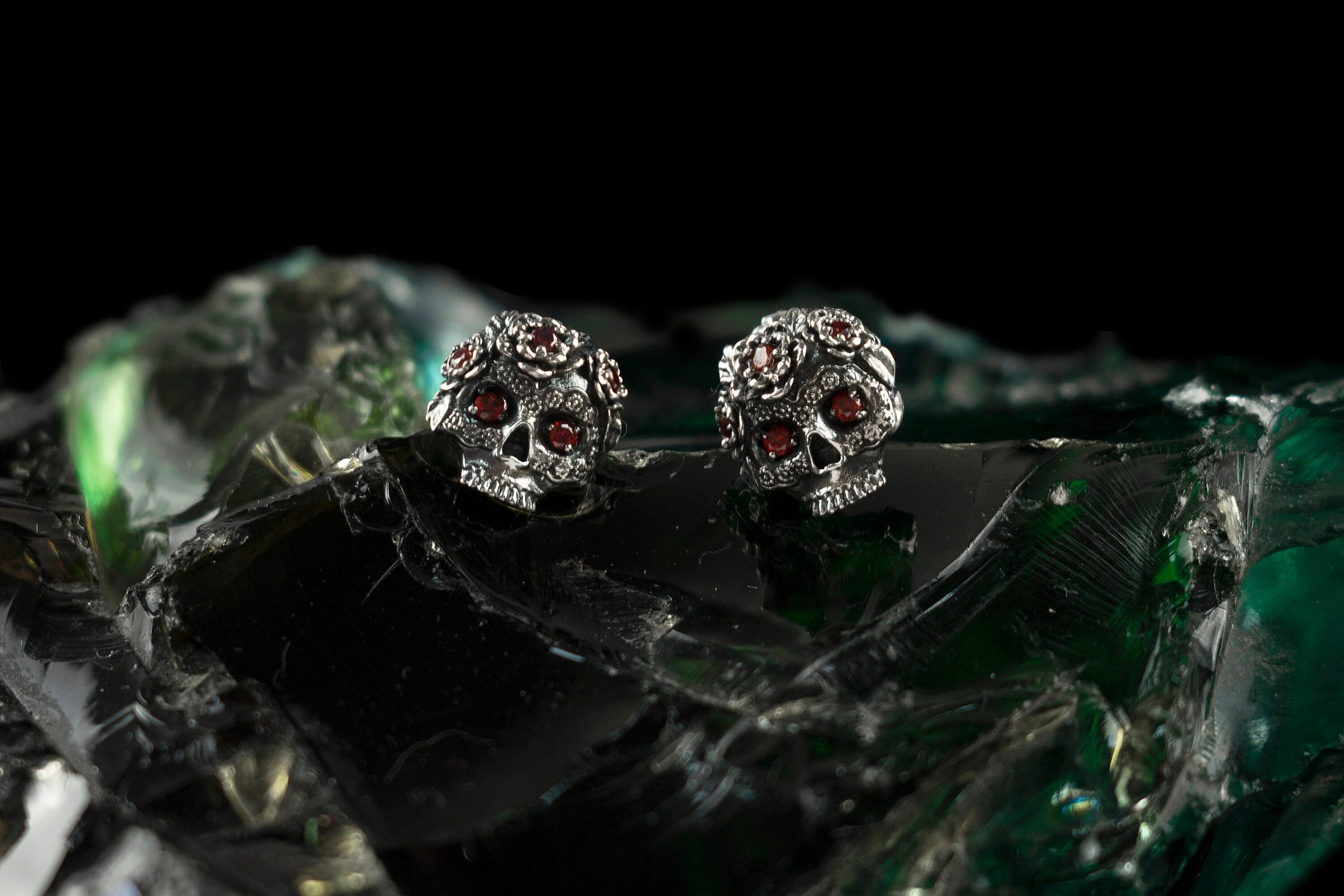 Skull Stud earrings Silver skull earrings Skull jewelry Stud Earrings skull Bikers jewelry
