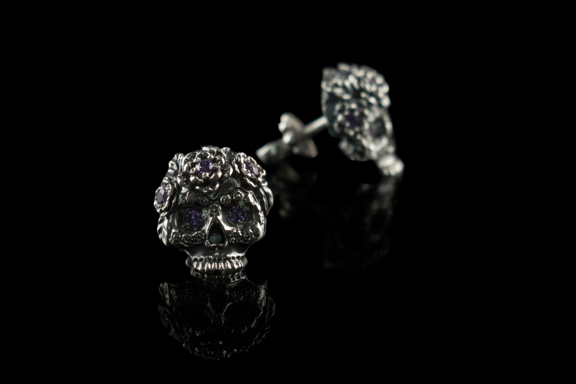 Skull studs Silver skull earrings Screw back studs Frida earrings