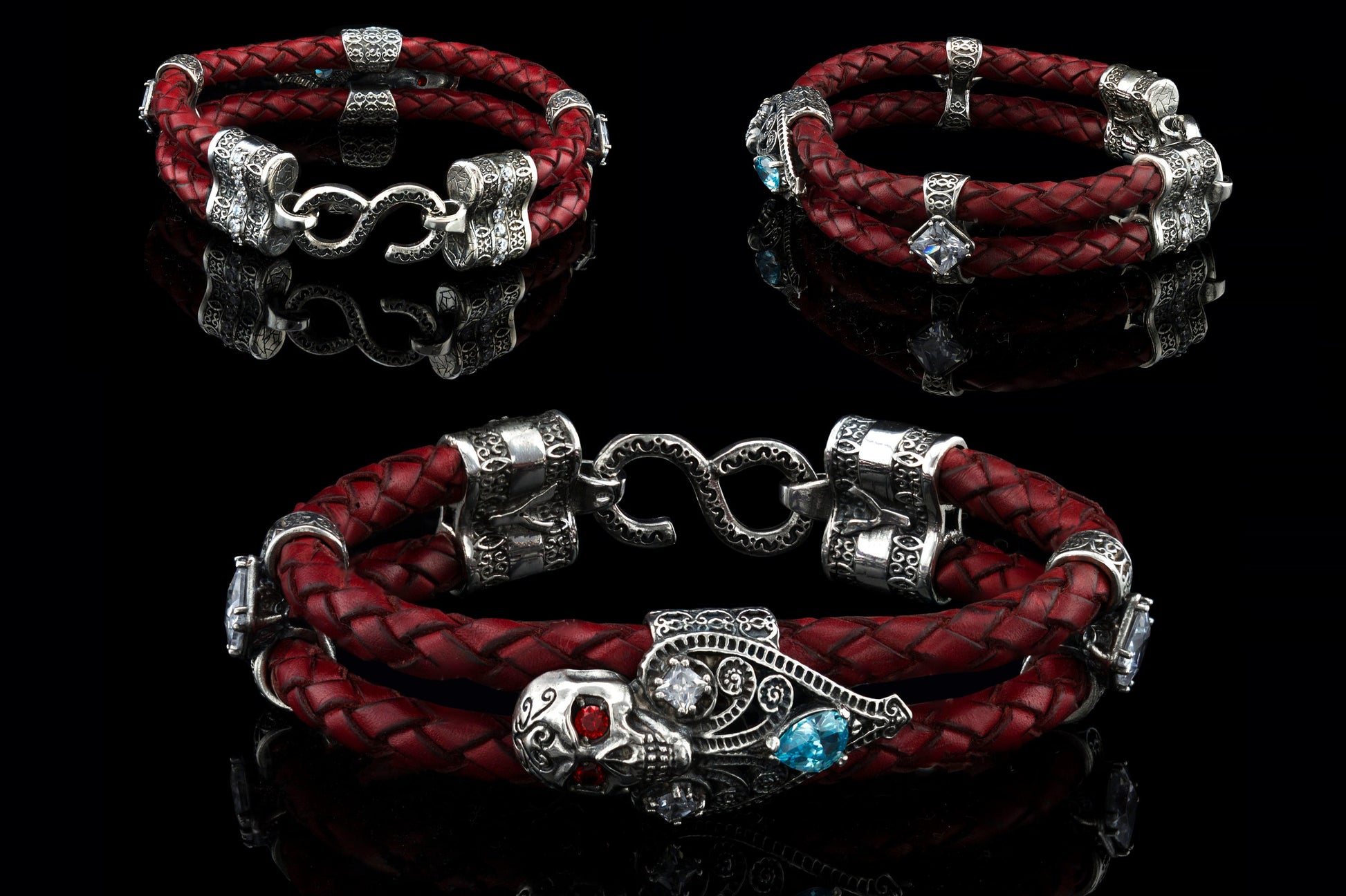 Women's skull bracelet Matilda Skull jewelry Sterling silver 925 Red leather